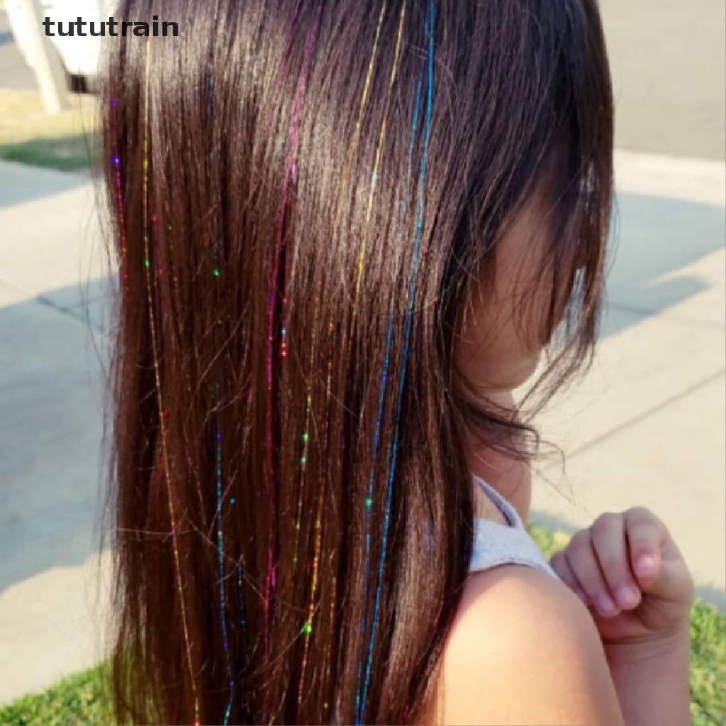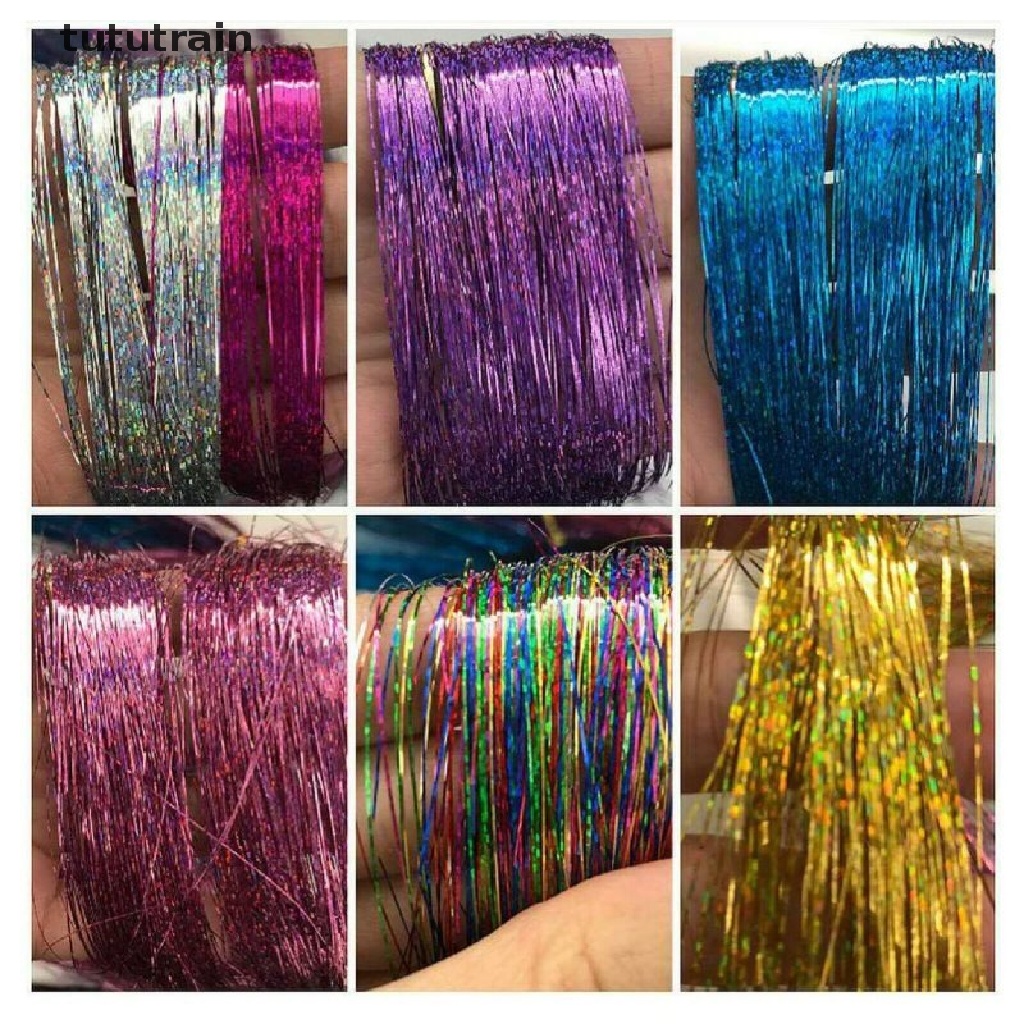 Tututrain 200 Fios Holográfico Brilho Extensões De Enfeites De Cabelo Deslumbra 90cm Feminino Hippie BR