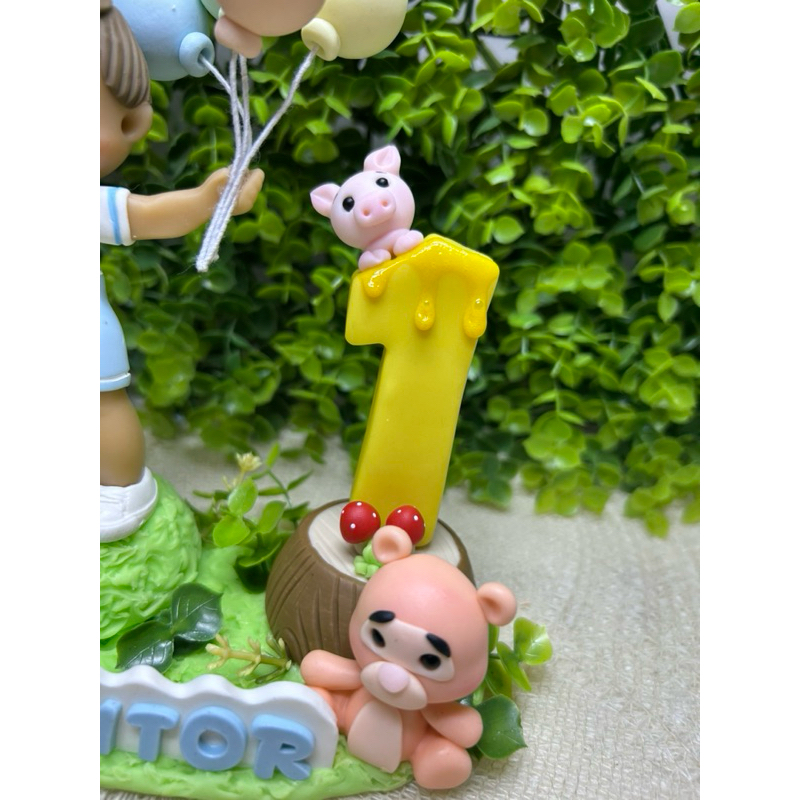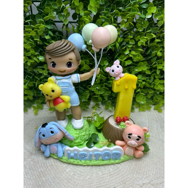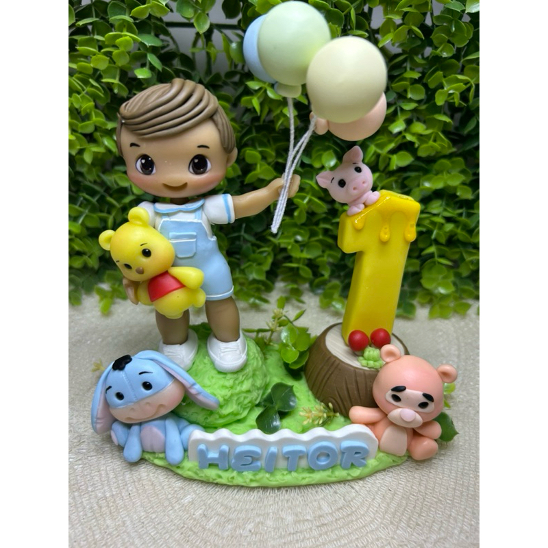 Vela Aniversário Infantil Personalizada Topo de Bolo Biscuit Ursinho Pooh