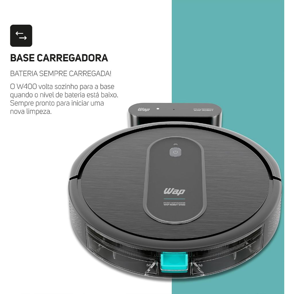 WAP Aspirador de Pó Robô ROBOT W400 3 em 1, Automático, 300ml, Compatível com Assistentes de Voz, 30W 10,8VDC Bivolt