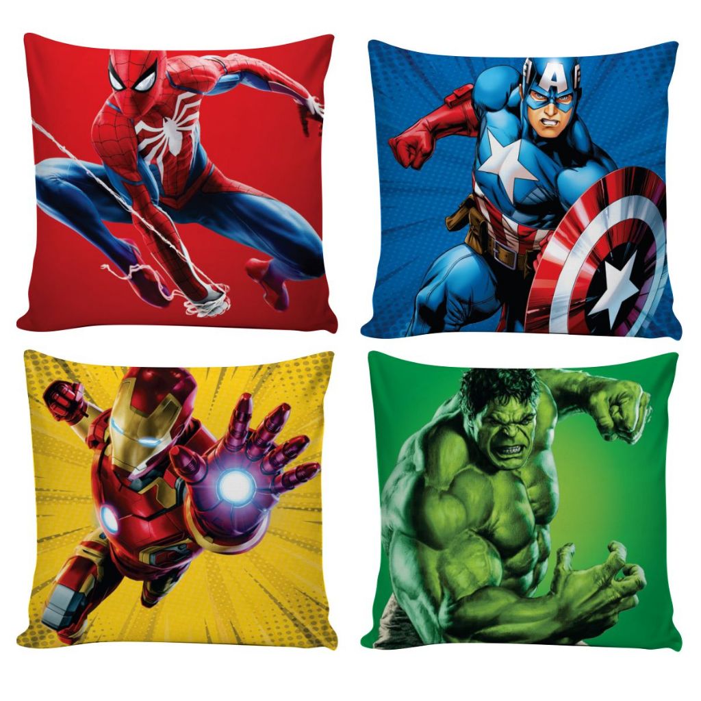 Kit 4 Capas de Almofadas Super Heróis Decorativas Quarto Conforto e Diversão