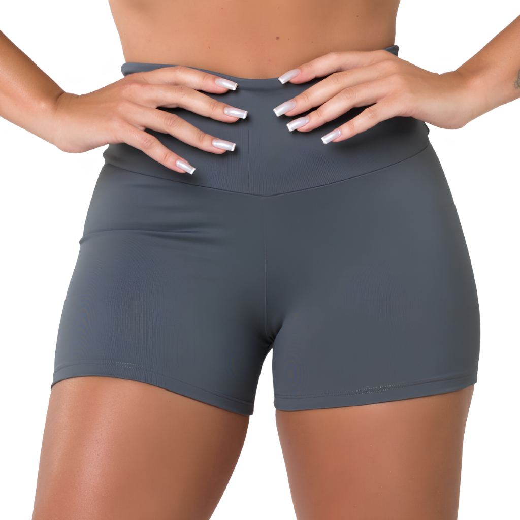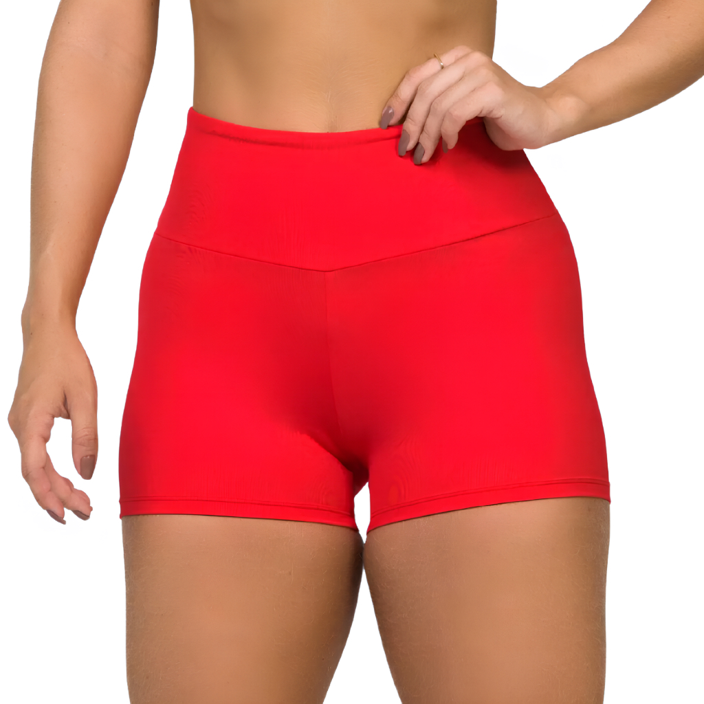 Short Fitness Academia Básico Cintura Alta Sem Transparência Academia Feminino