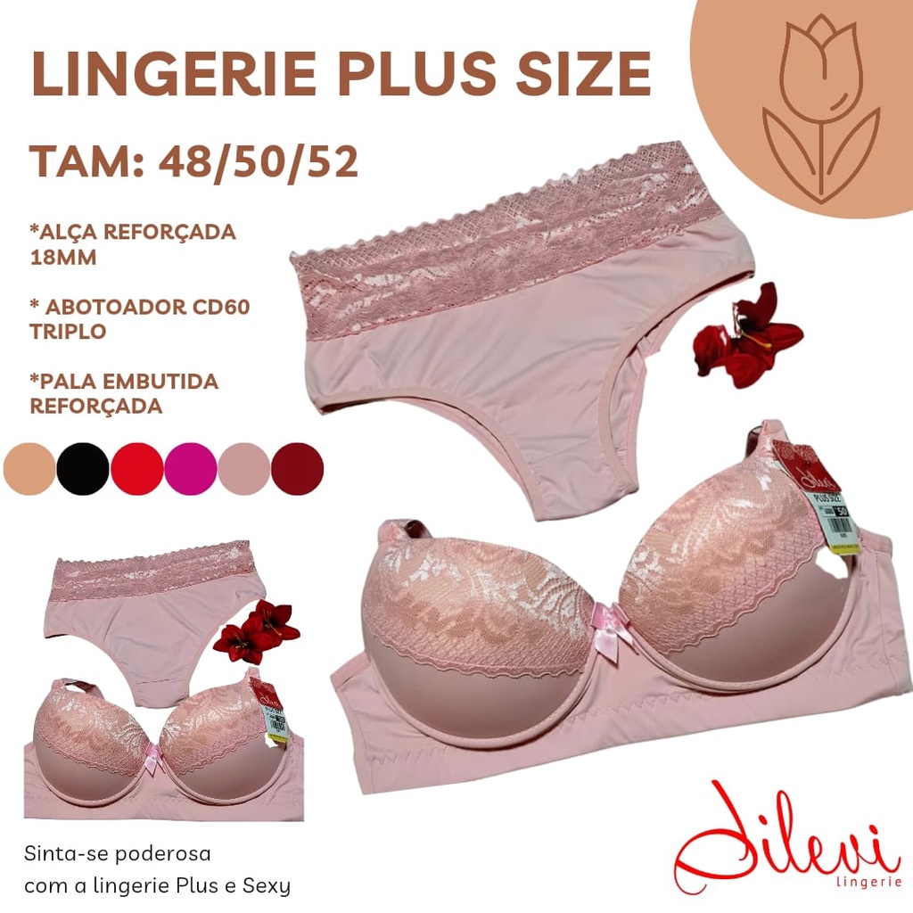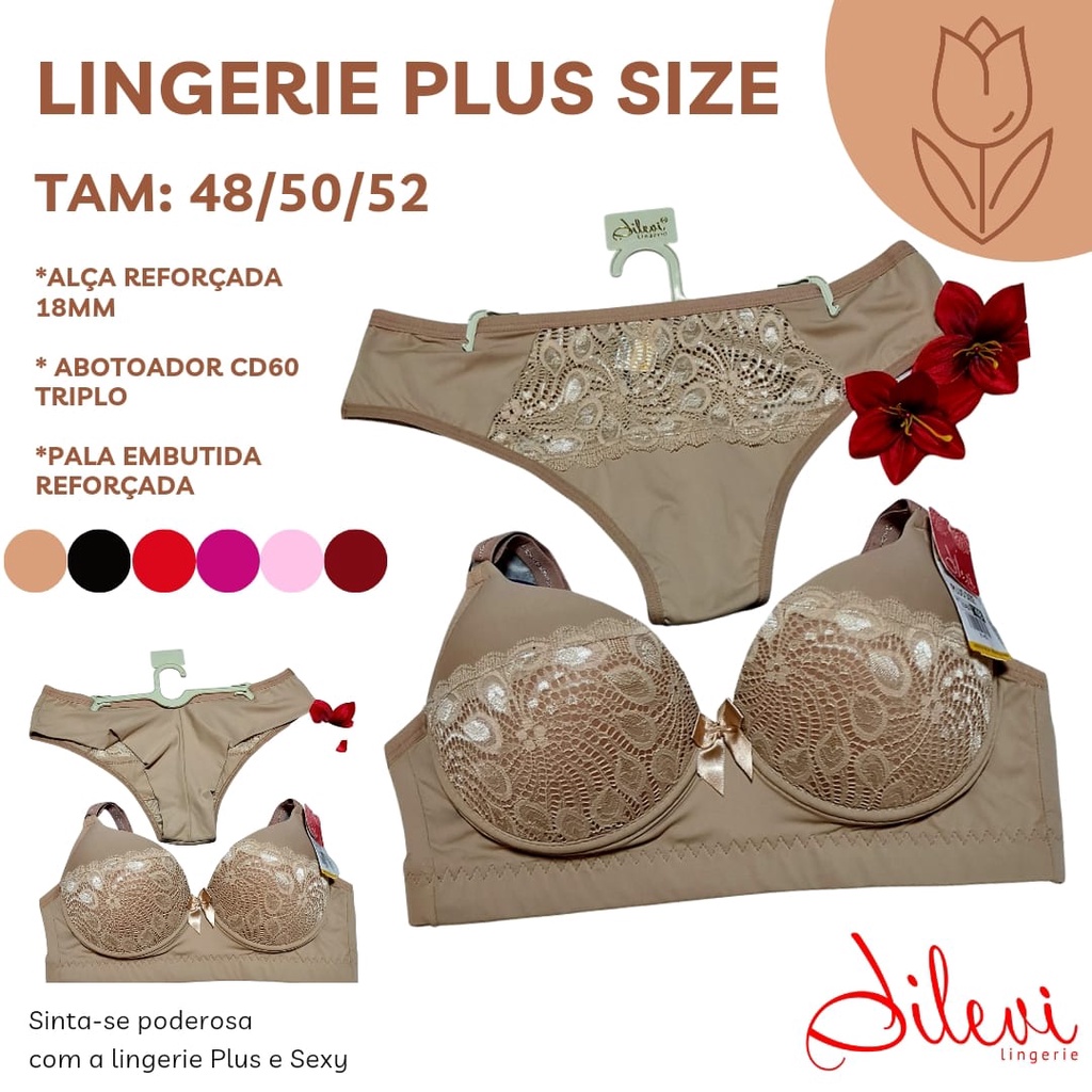 Conjunto Lingerie Plus Size Reforçado Luxo. Kit 2 pçs. Calcinha e Sutiã
