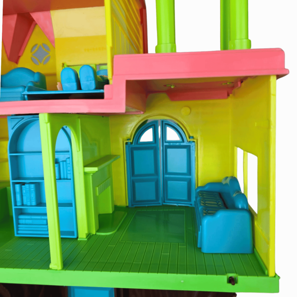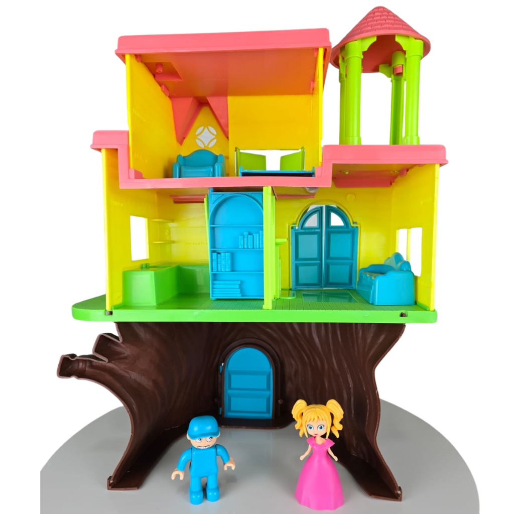 Casinha na Árvore Casa Infantil Brinquedo Menina com 2 Andares + Bonecos