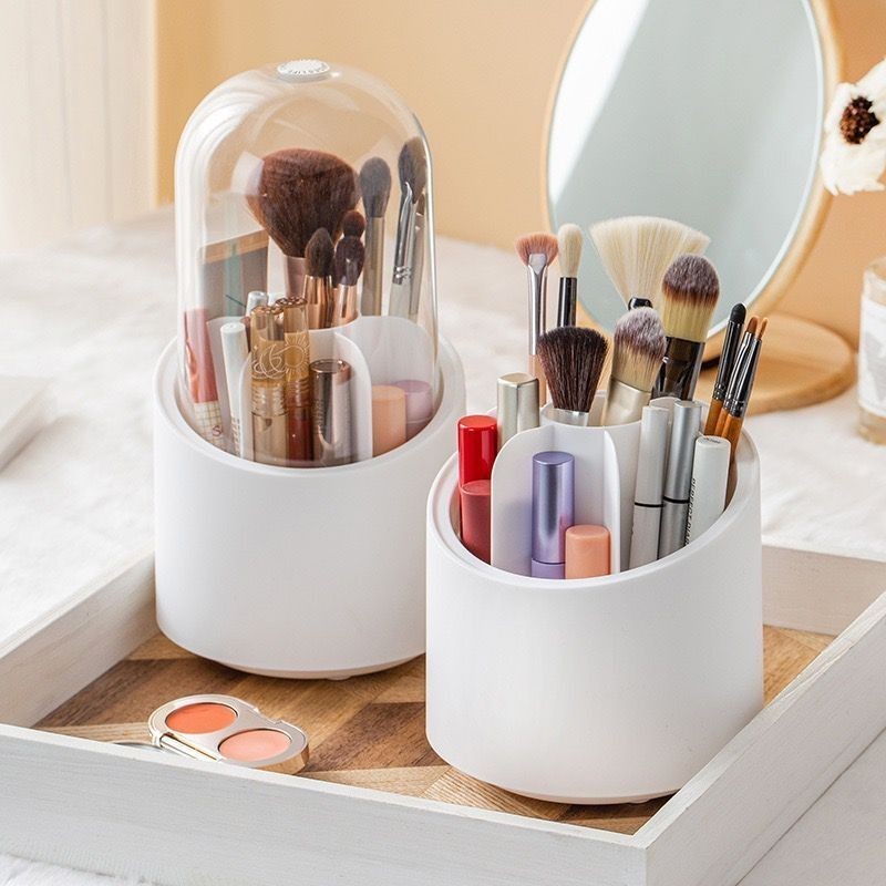 Porta Pincel De Maquiagem 360 Graus Rotativo Com TampaLimpadores de Escova de Maquiagem