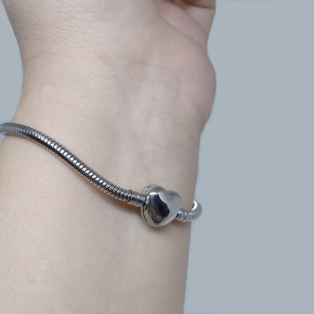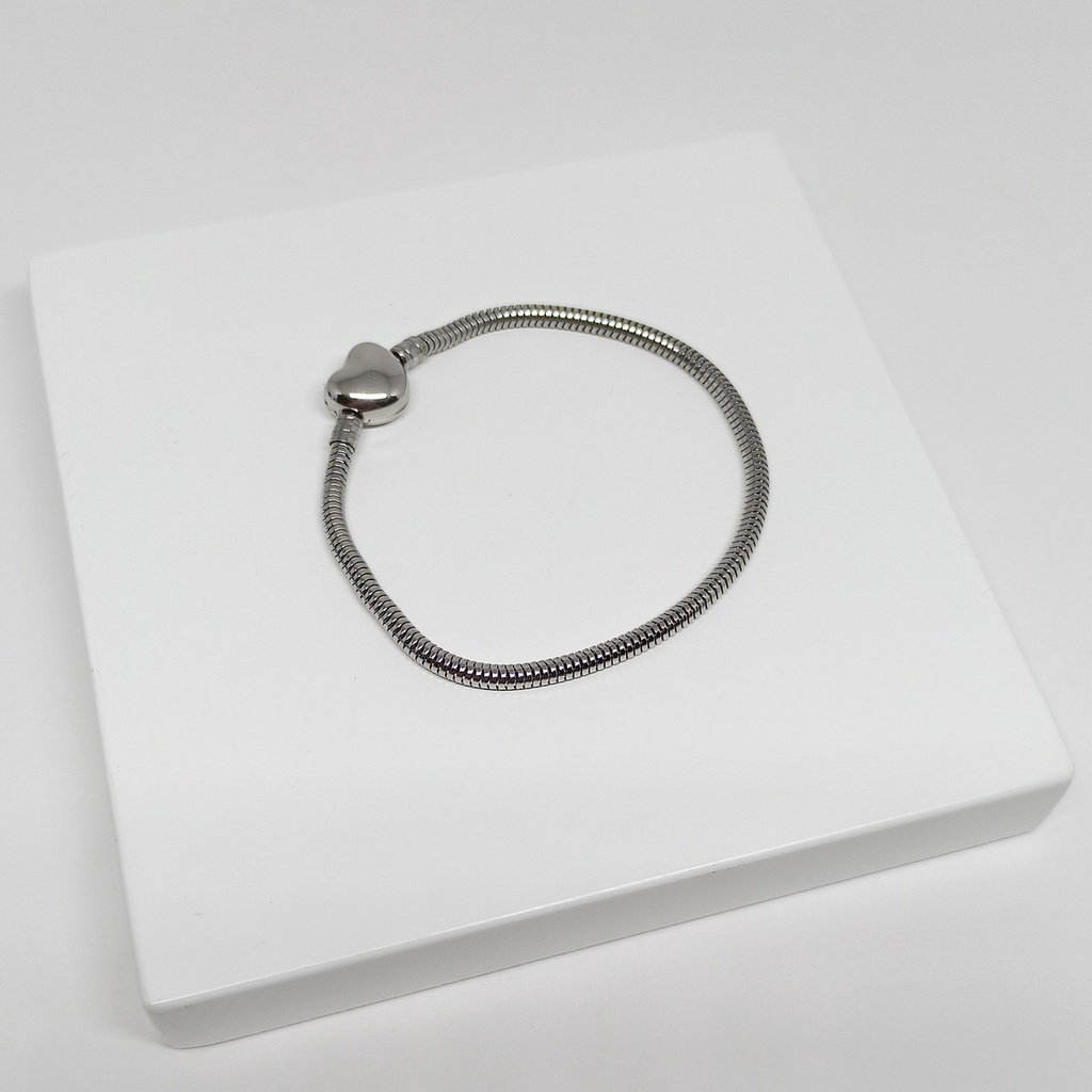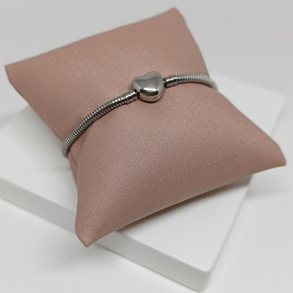 Pulseira Para Berloques em Aço Inox Fecho Coração
