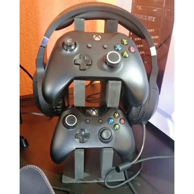 Suporte para 02 Controle e Fone de Ouvido Game PS1 PS2 PS3 PS4 PS5 Xbox One 360 Gamer Vertical Mdf