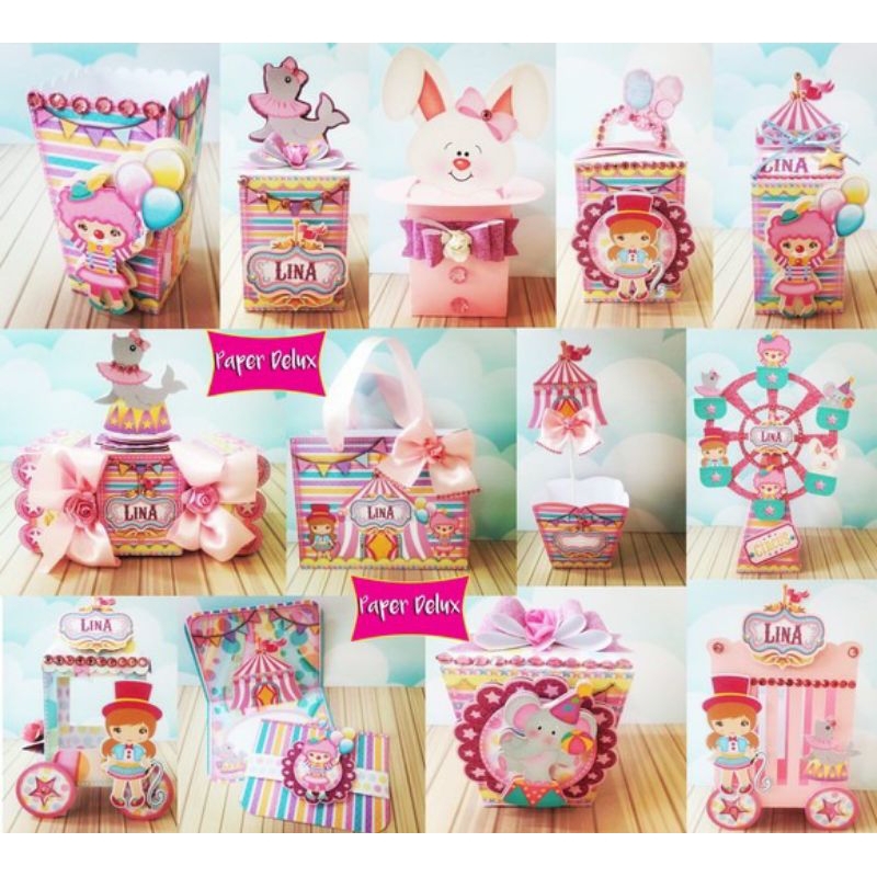kit personalizado infantil Circo Rosa Lina (Combo de 5 peças por modelo)