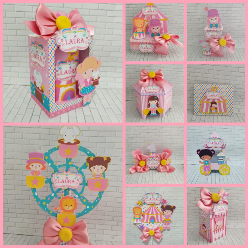 kit Personalizado Circo Rosa Laura ( Combo de 5pçs por modelo)