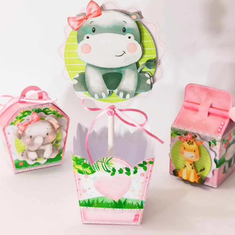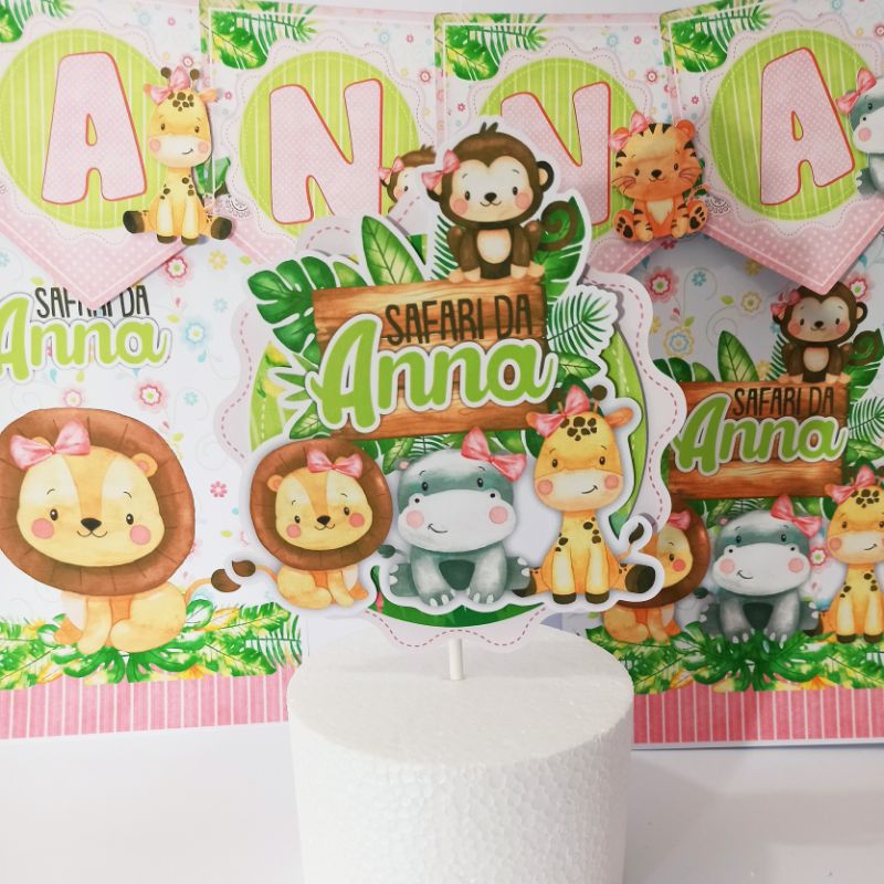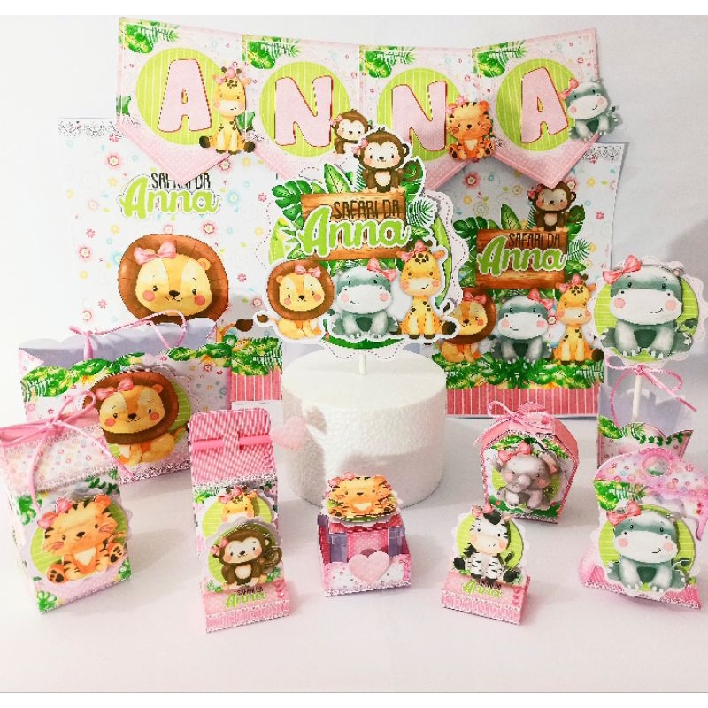 kit personalizado infantil safari Rosa ( Combo de 5 peças por modelo)