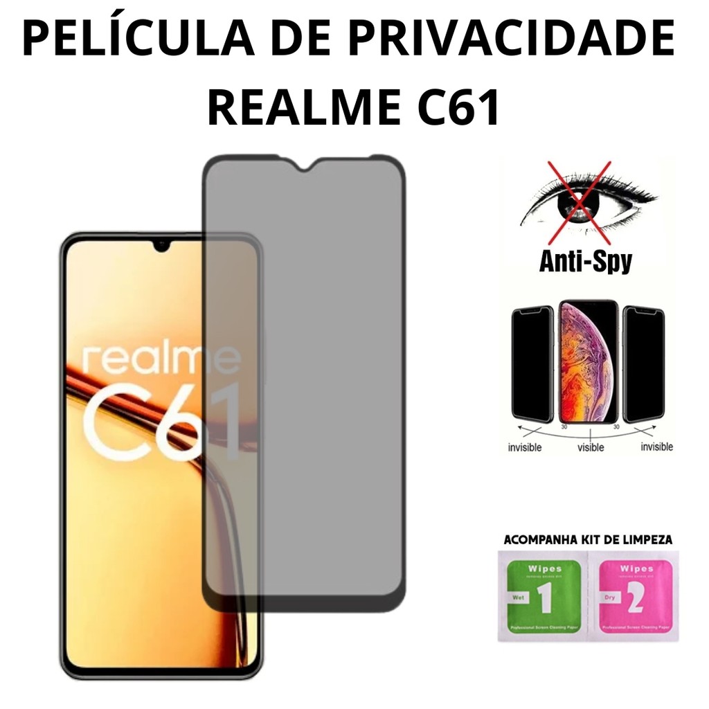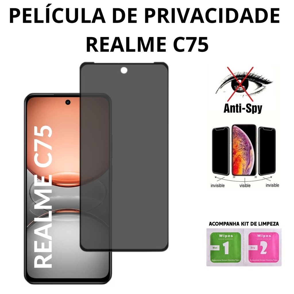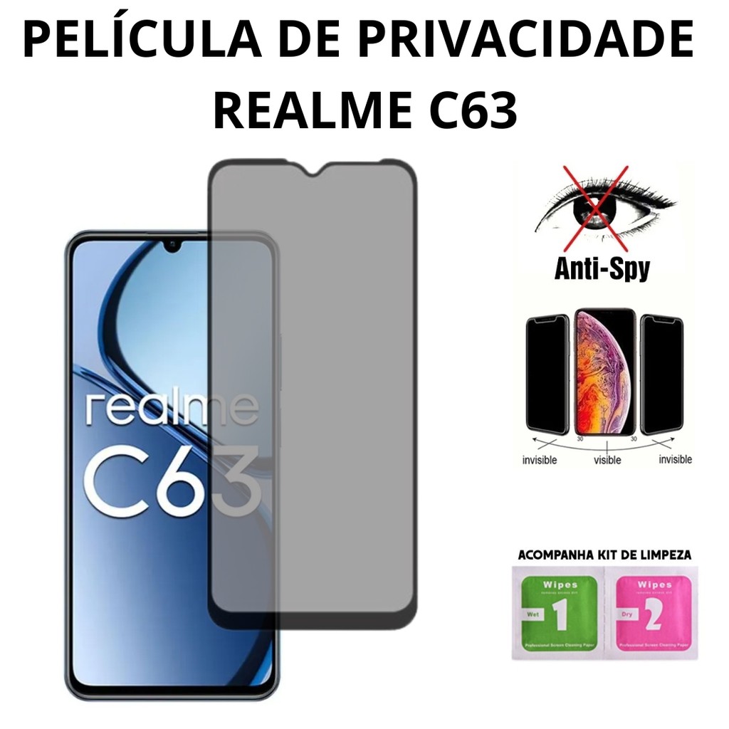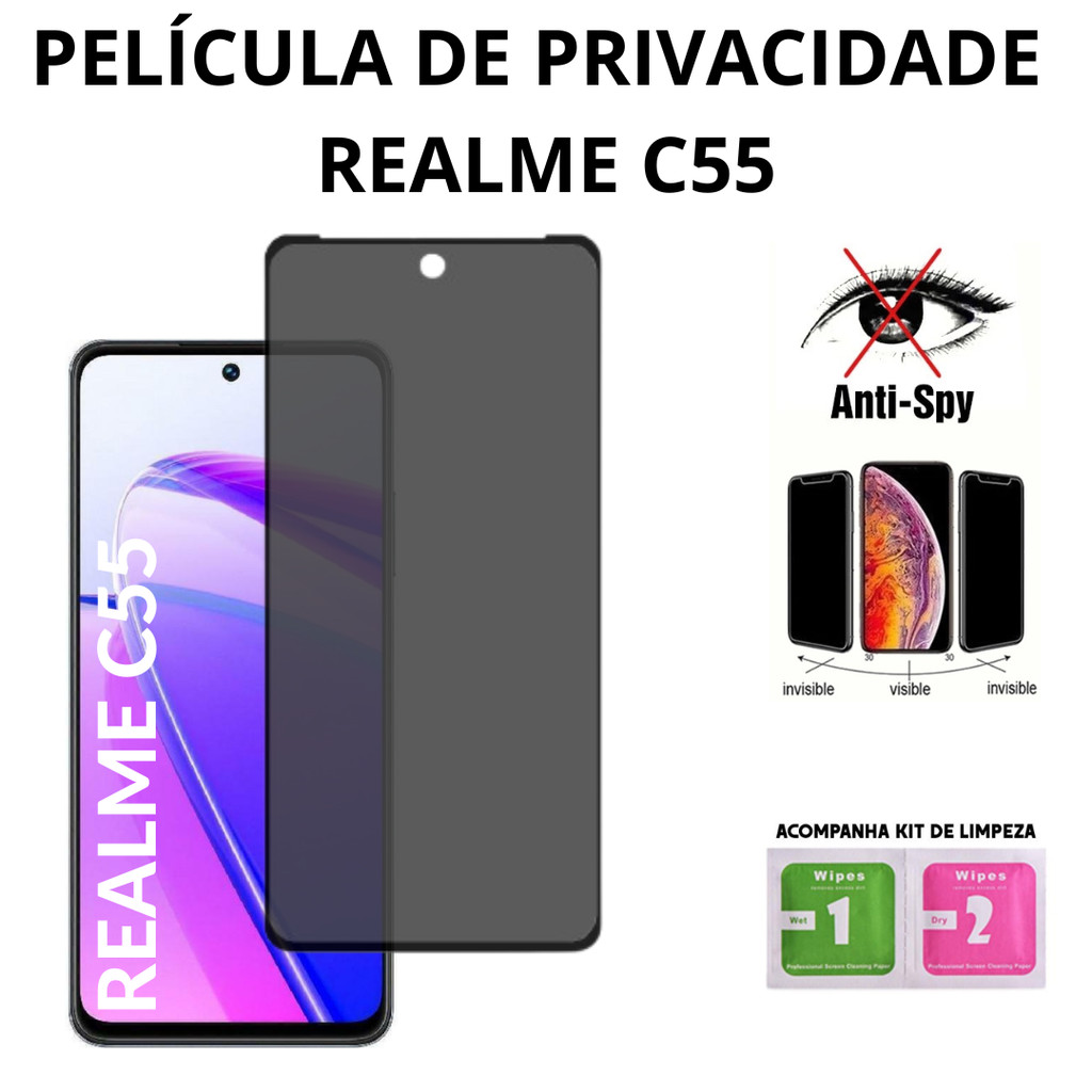 Película de Privacidade Vidro 3D Para Realme C35/ C51/ C53/ C55/ C61/ C63/ C65/ C67/ C75