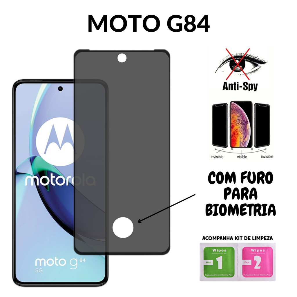 Película de Privacidade Vidro 3D Para Motorola Moto G84 - Com Furo Para Biometria