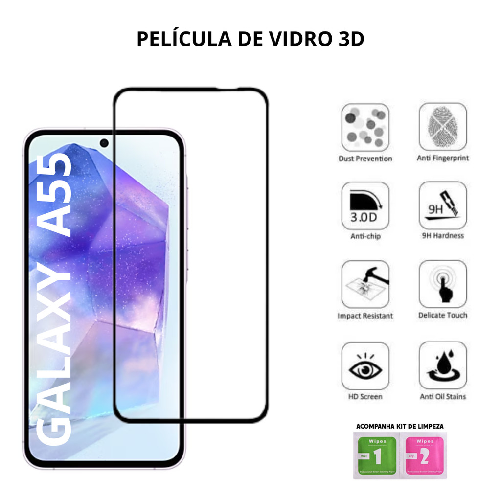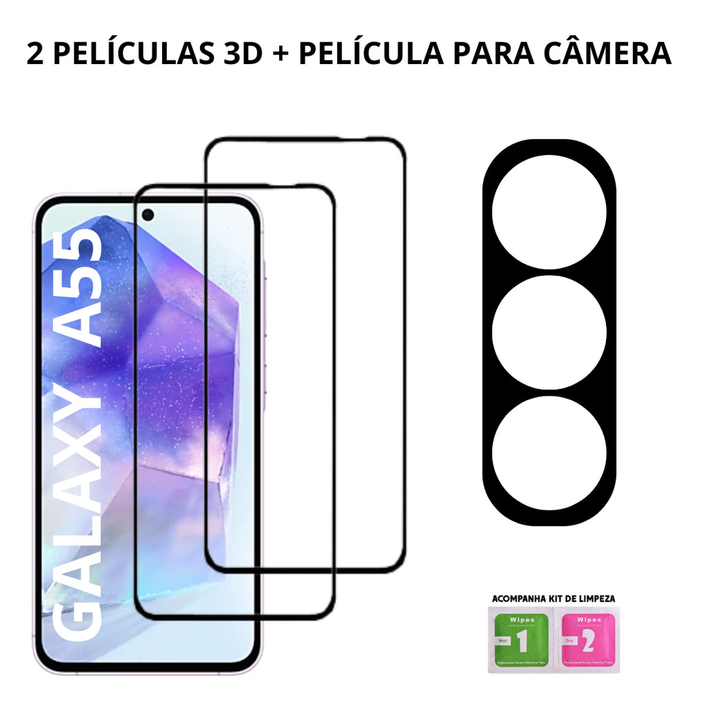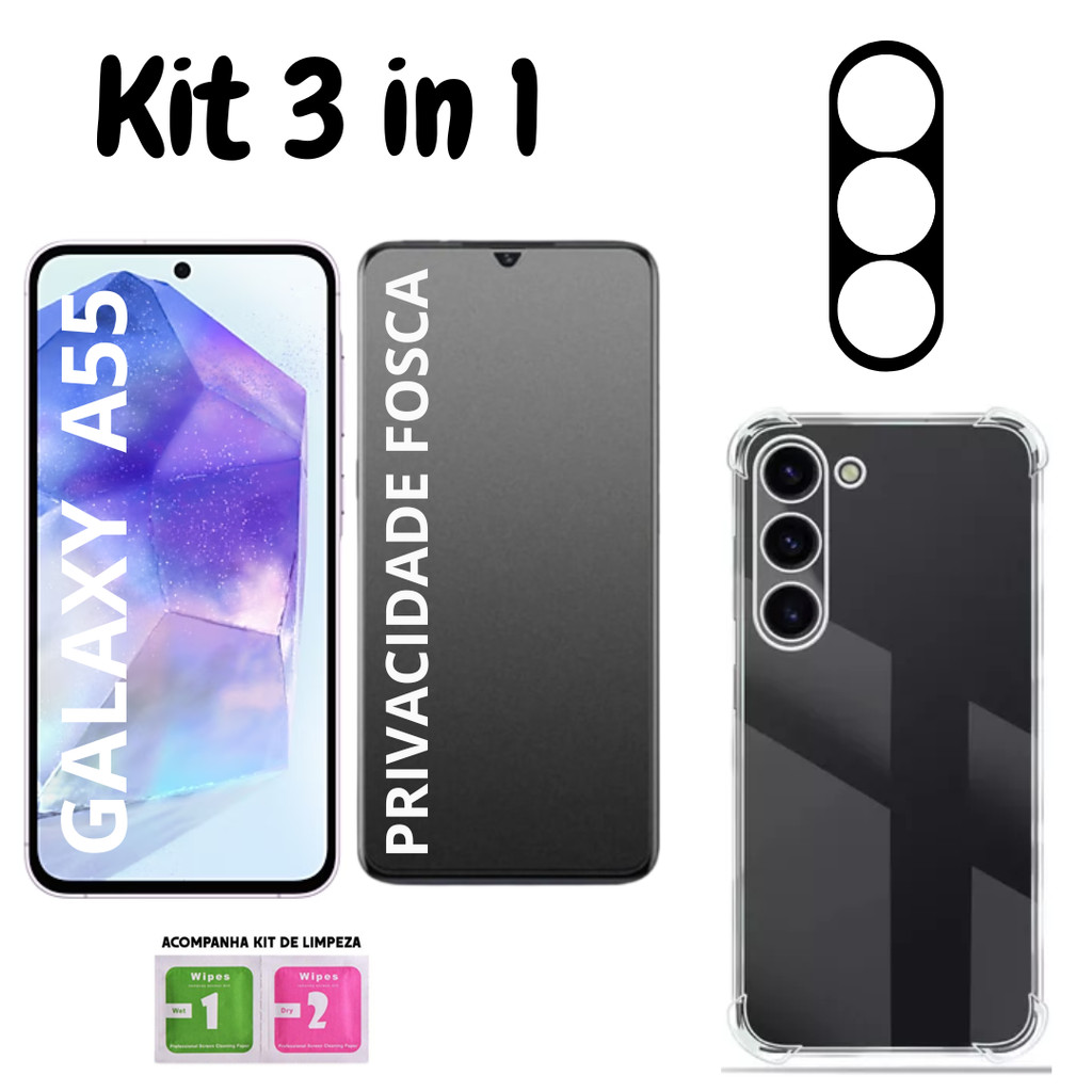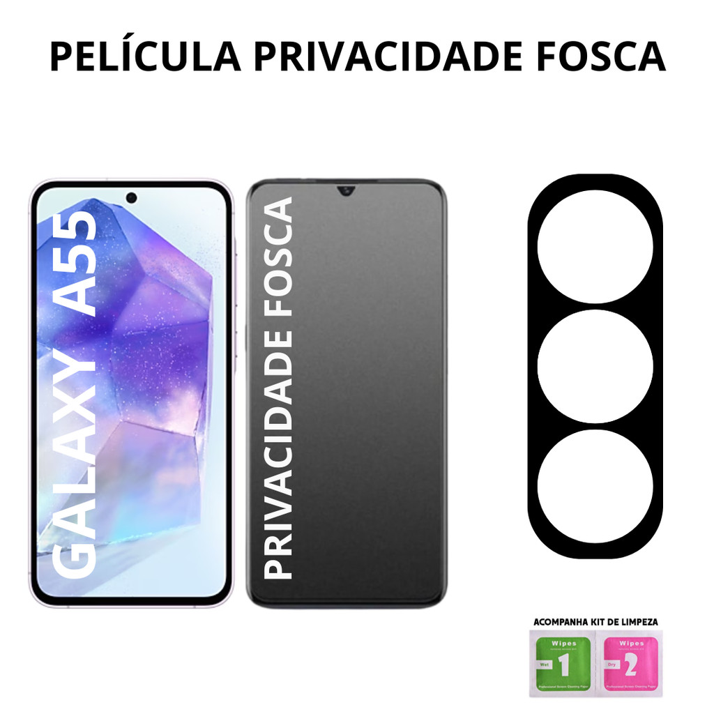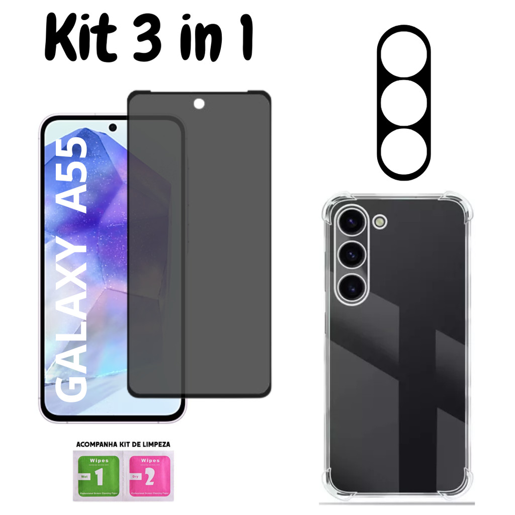 Kit Película de Privacidade Samsug Galaxy A55 + Câmera + Capinha Anti-Impacto