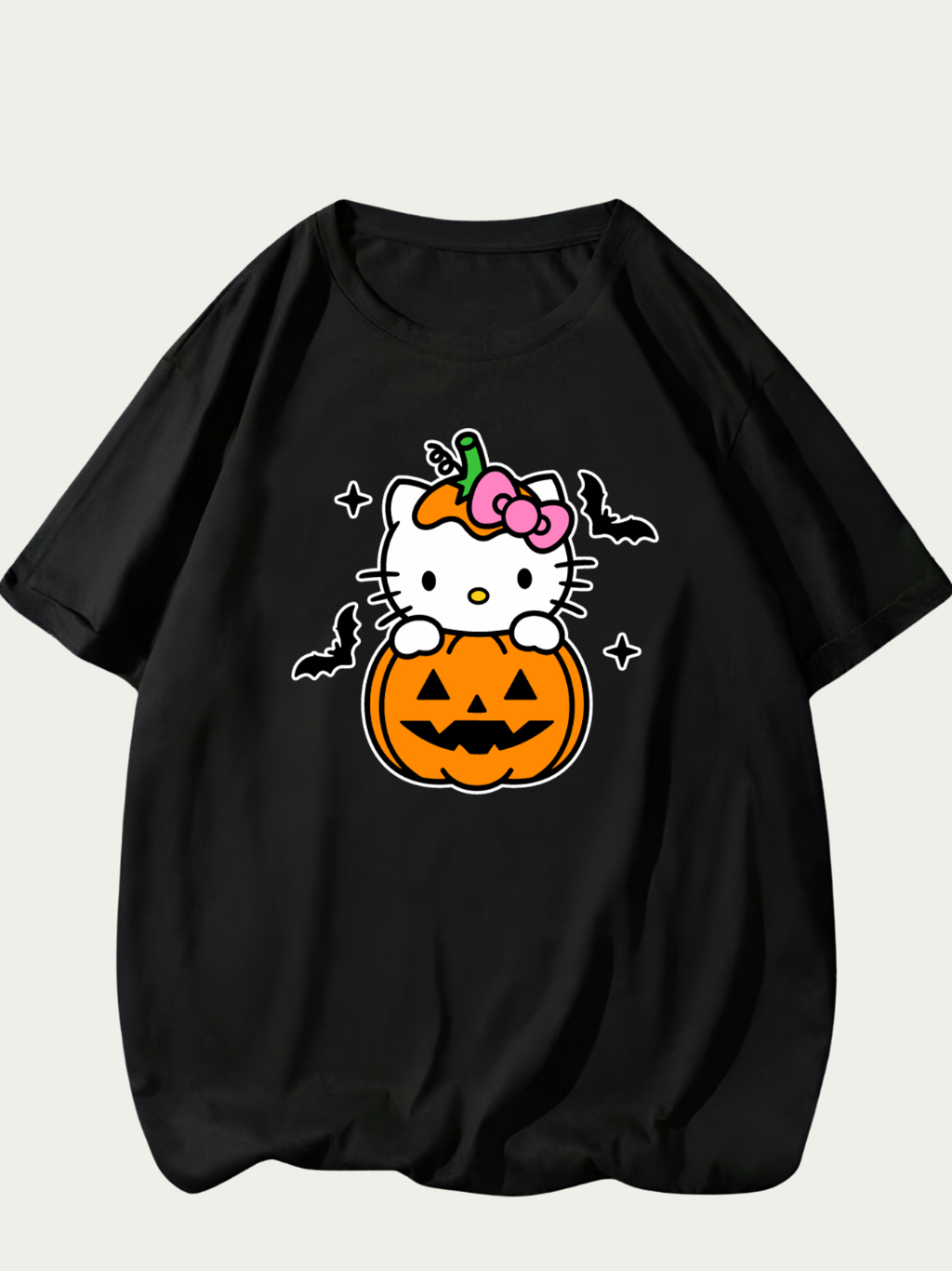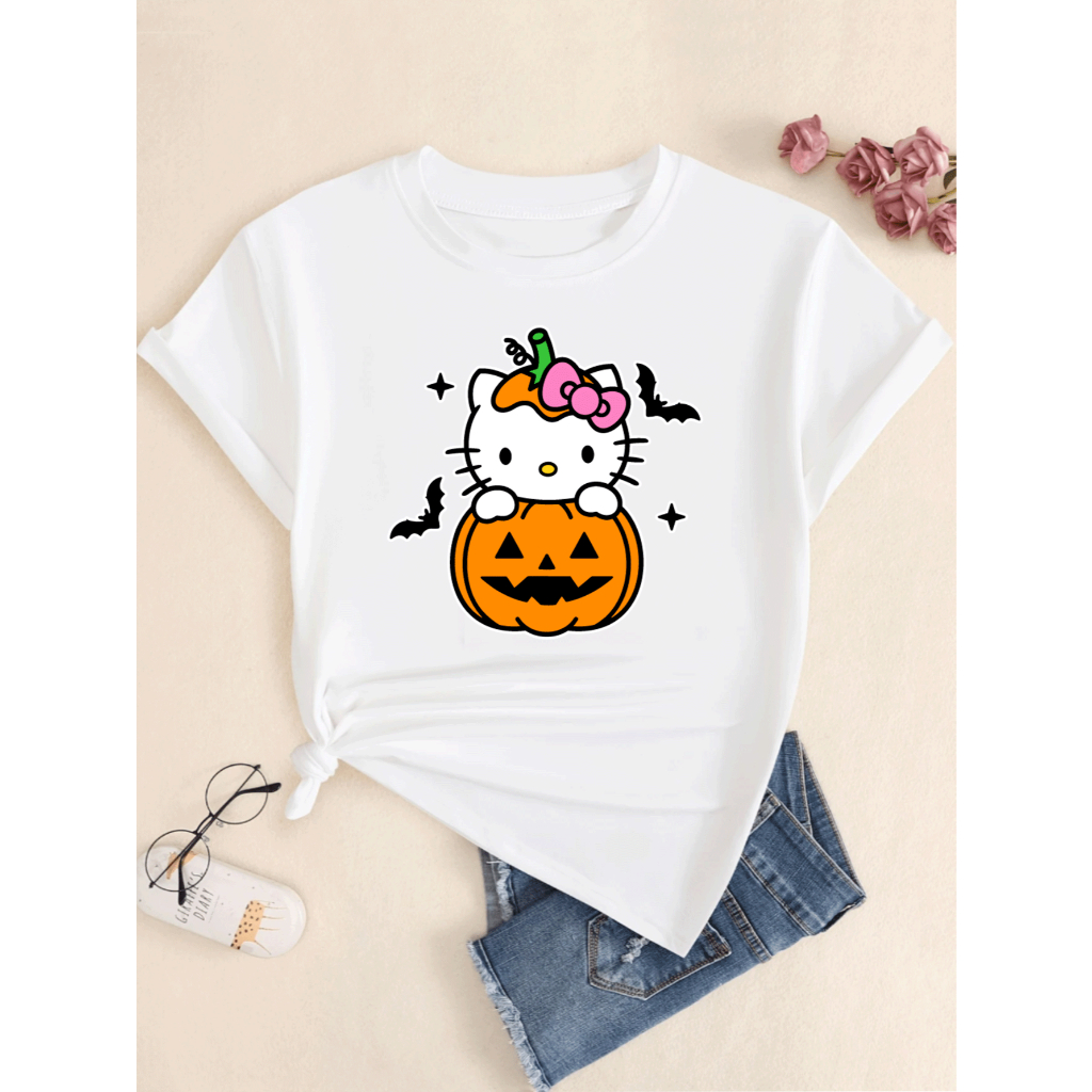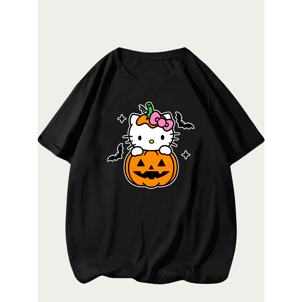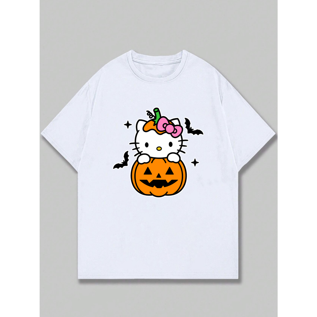 Camiseta Camisa Básica Hello Kitty Halloween 100% Algodão Feminina Masculina T-Shirt Baby Look