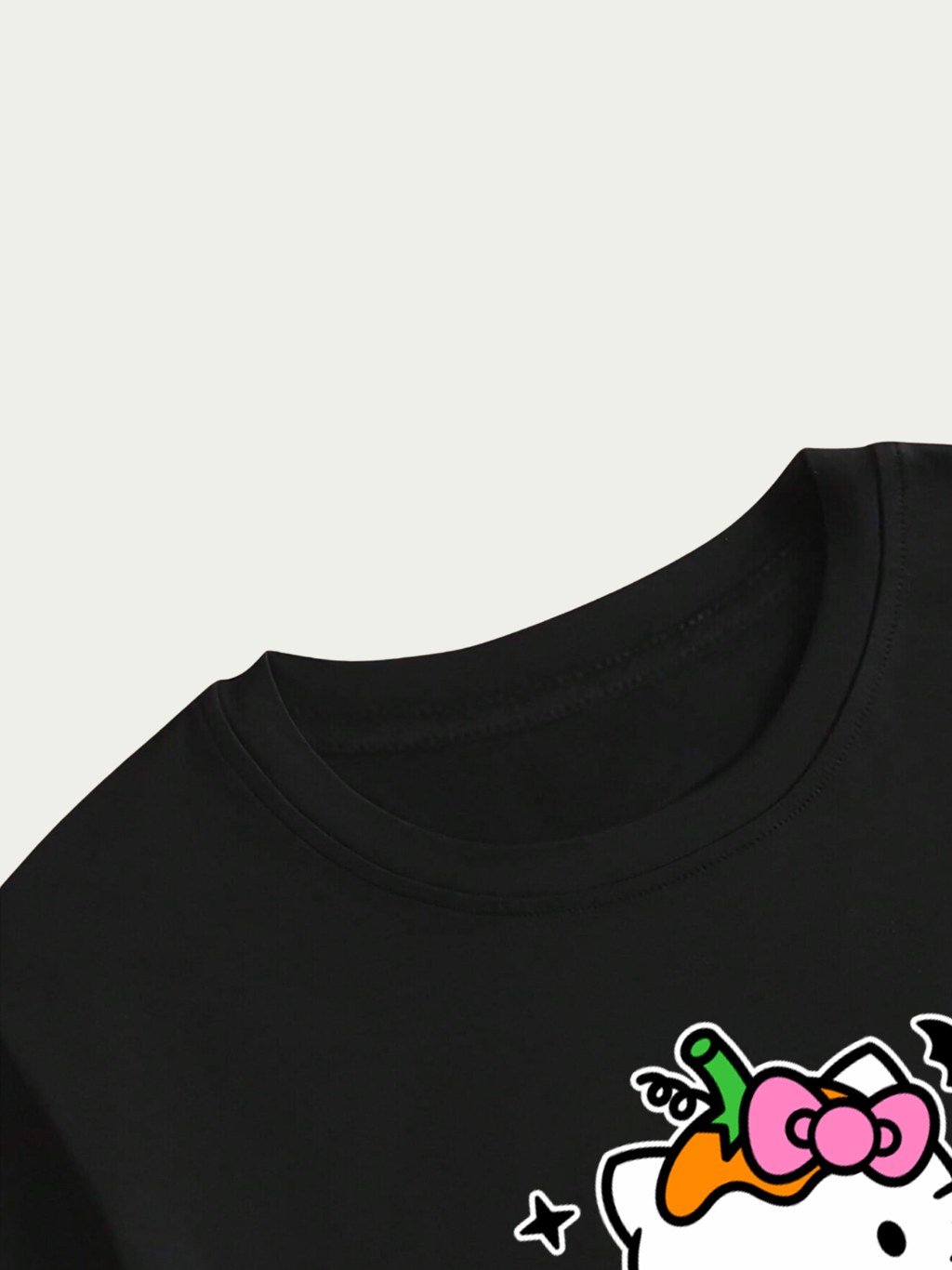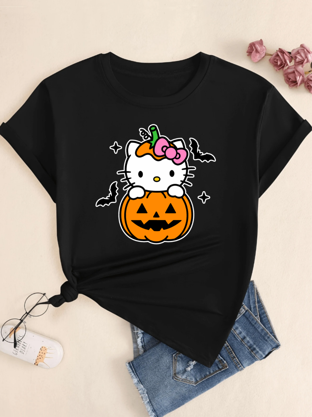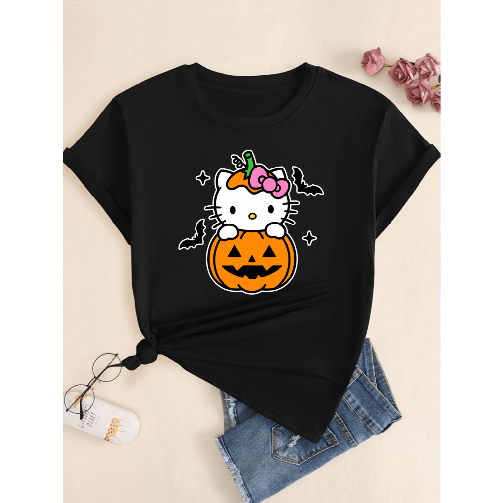 Camiseta Camisa Básica Hello Kitty Halloween 100% Algodão Feminina Masculina T-Shirt Baby Look