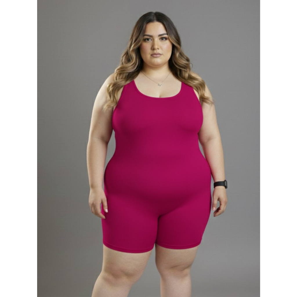 Macaquinho Fitness Feminino Suplex Slim Plus Academia Yoga Corrida Pilates Caminhada