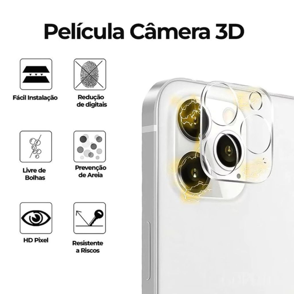 Kit 3em1 Película Traseira + Lente Transparente + Cerâmica Fosca Privacidade Compatível iPhone 11 12 13 14 15 click