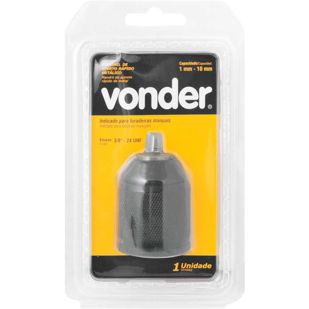 Mandril de aperto rápido metálico, 10 mm - 3/8", rosca 3/8", VONDER