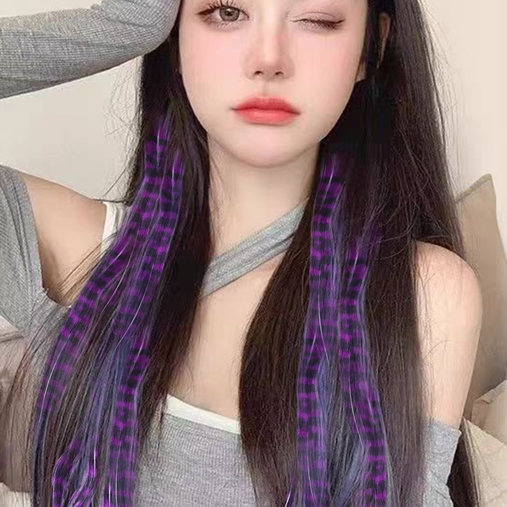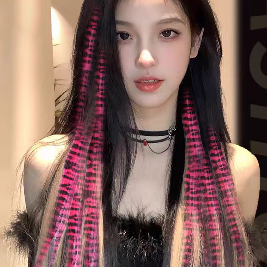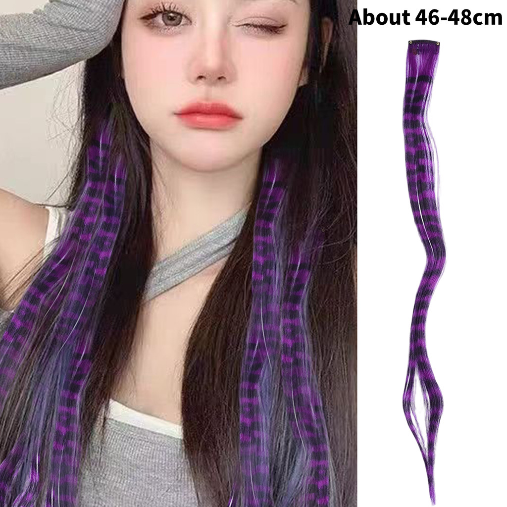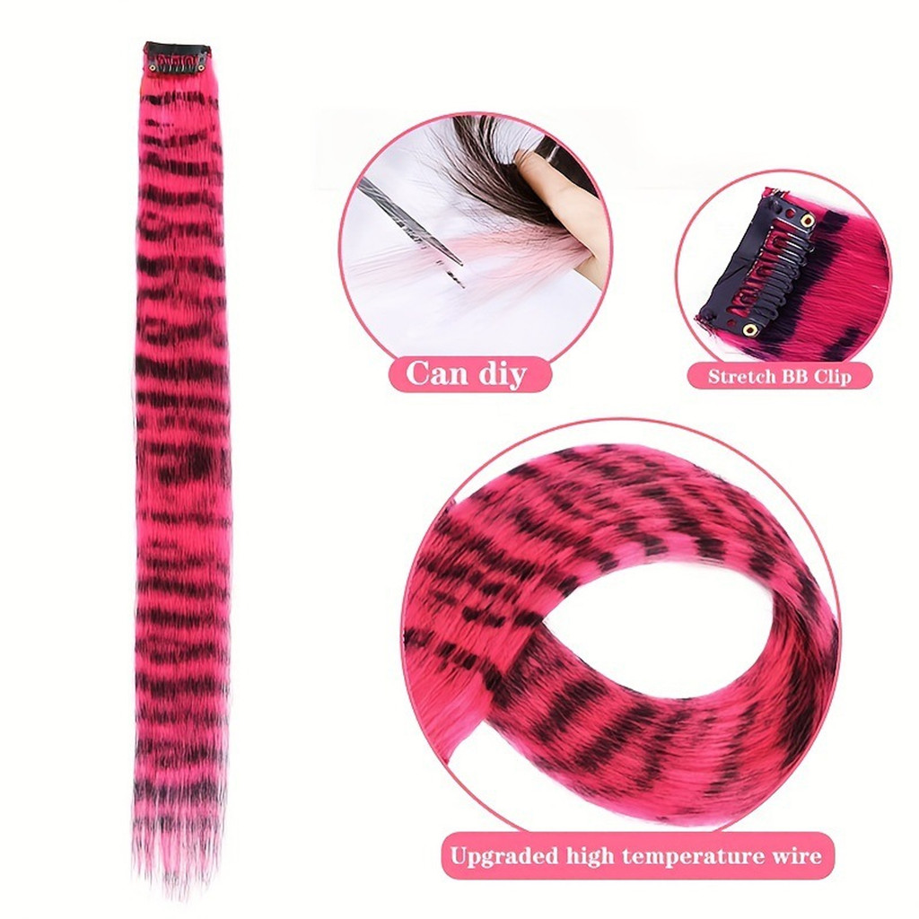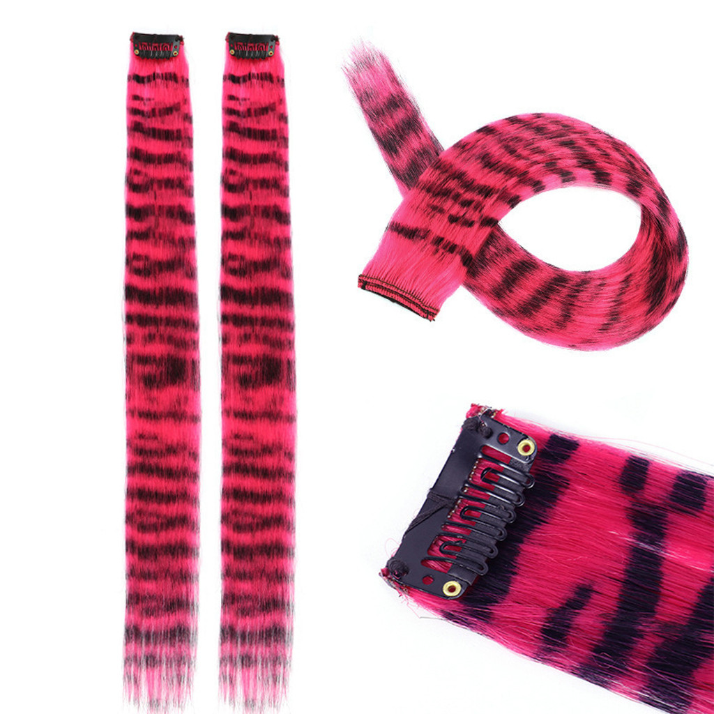Orelha De Seda Colorida Com Estampa De Leopardo Pendurada Peruca-Extensões De Cabelo Sintéticas Clipe-De Linha Zebra