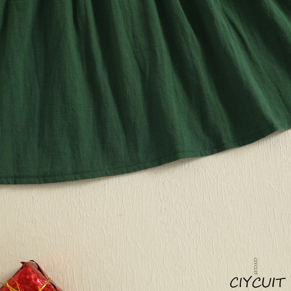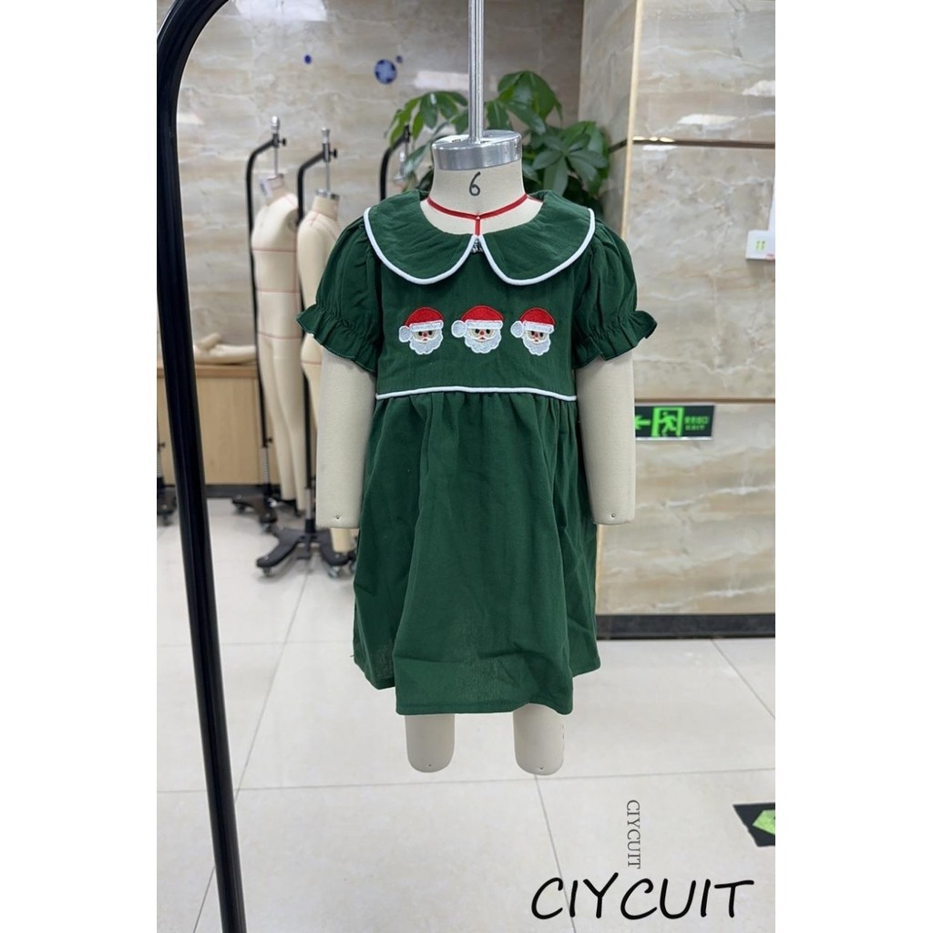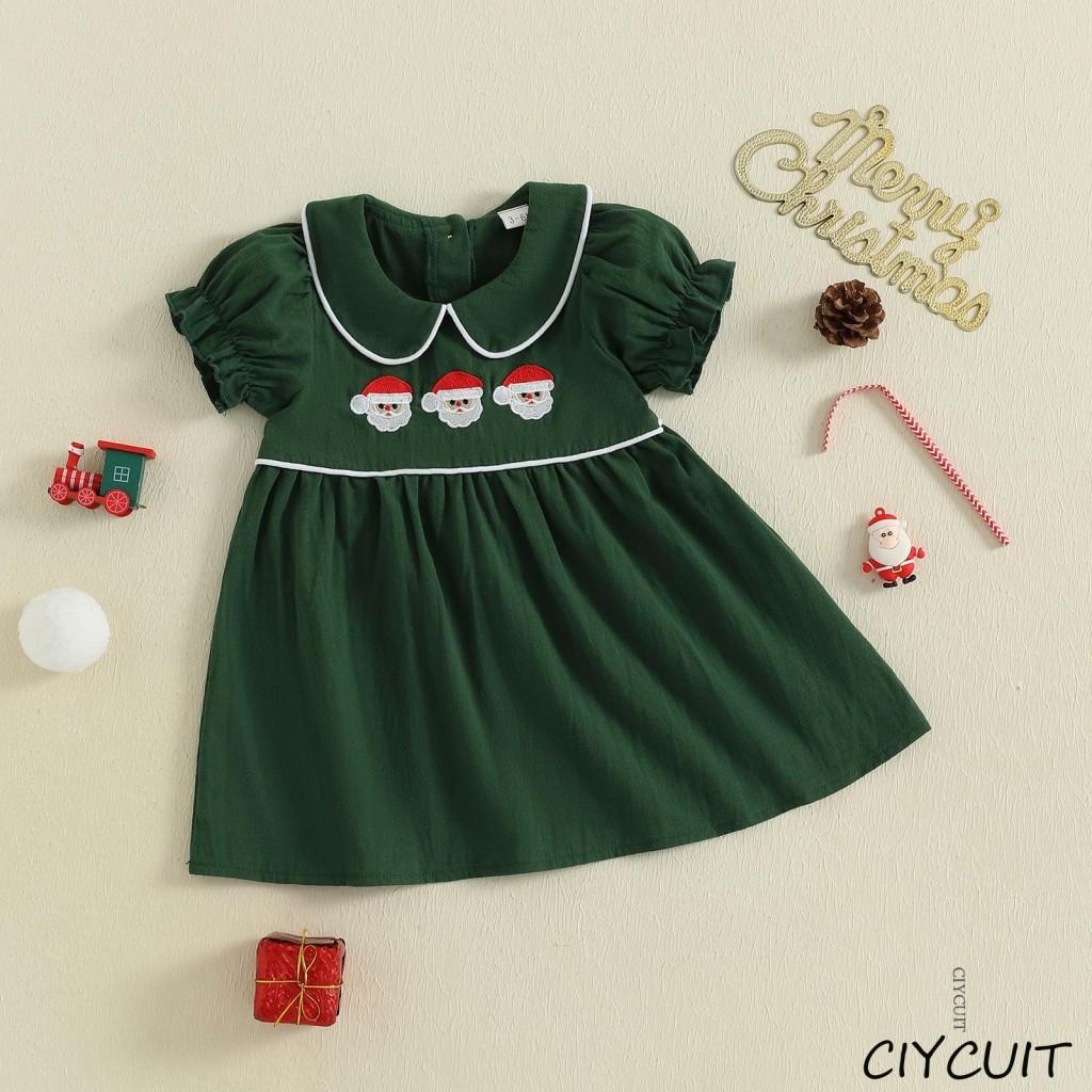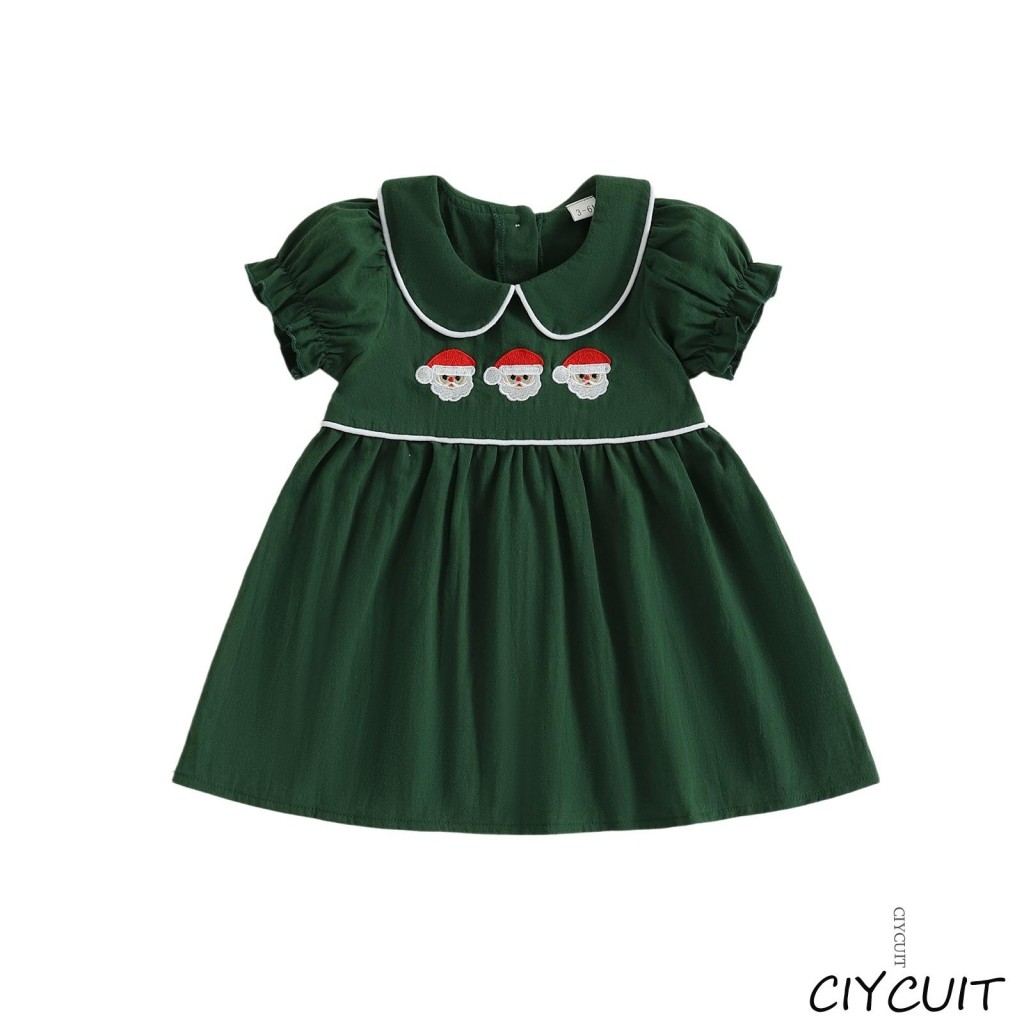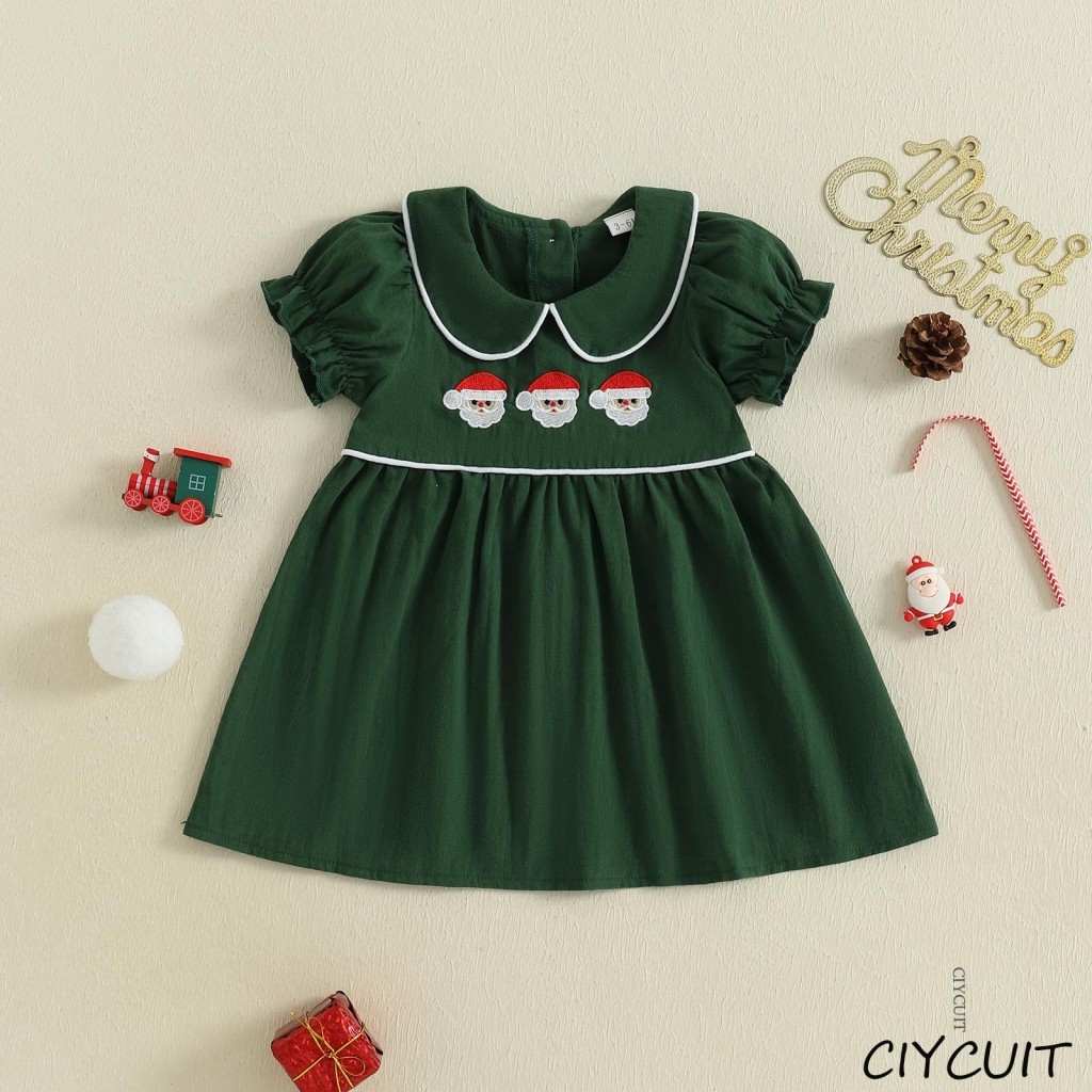Vestido Infantil De Natal Para Meninas , Manga Curta , Gola Boneca , Bordado De Papai Noel , Roupa De Férias