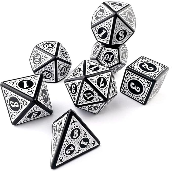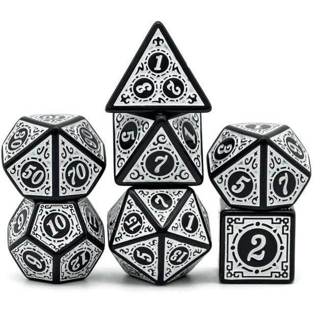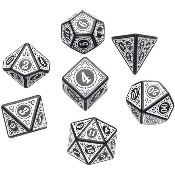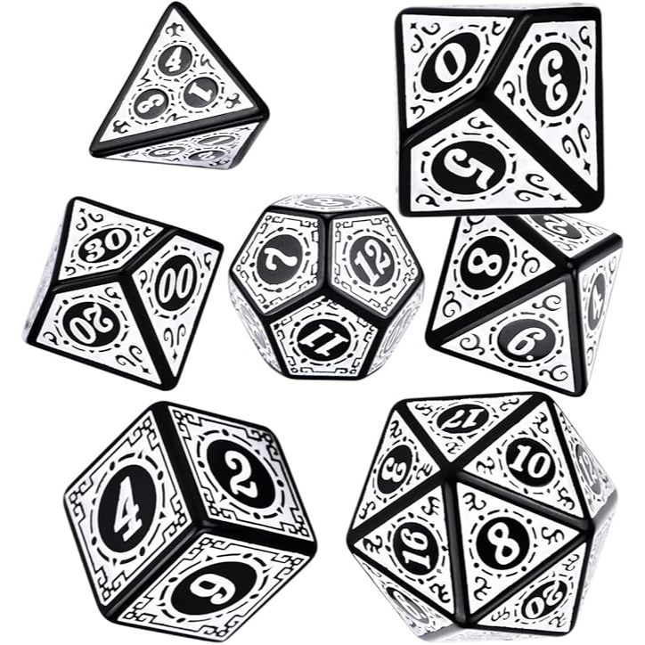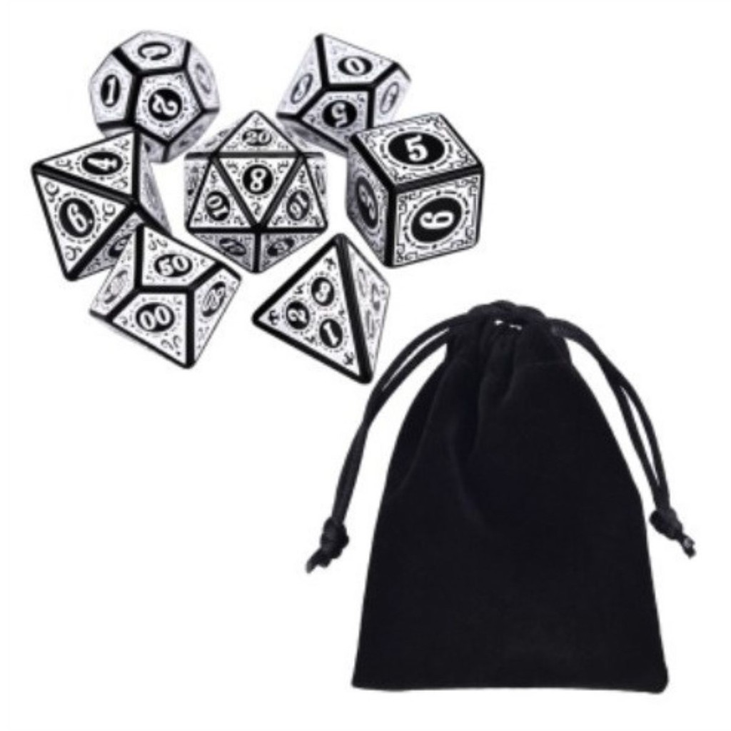 Dados Rpg Conjunto Com Sete - Runas Preta C/n° Branco