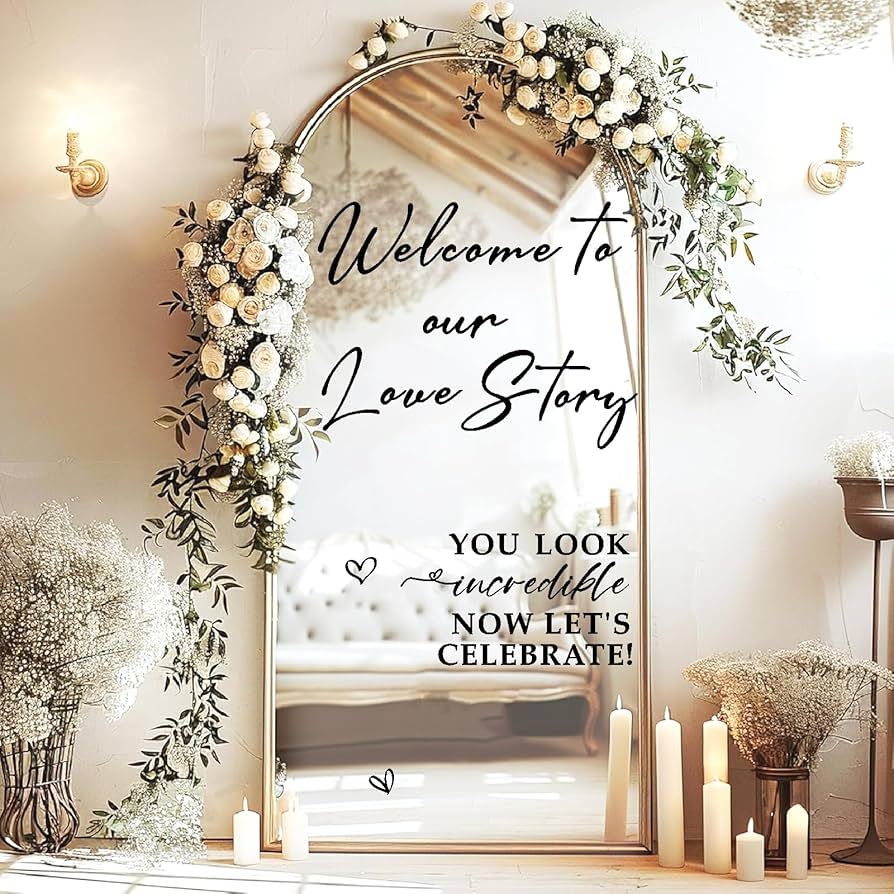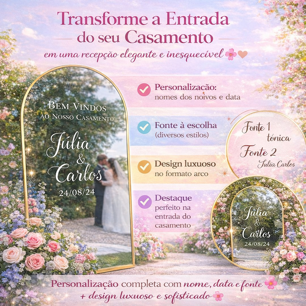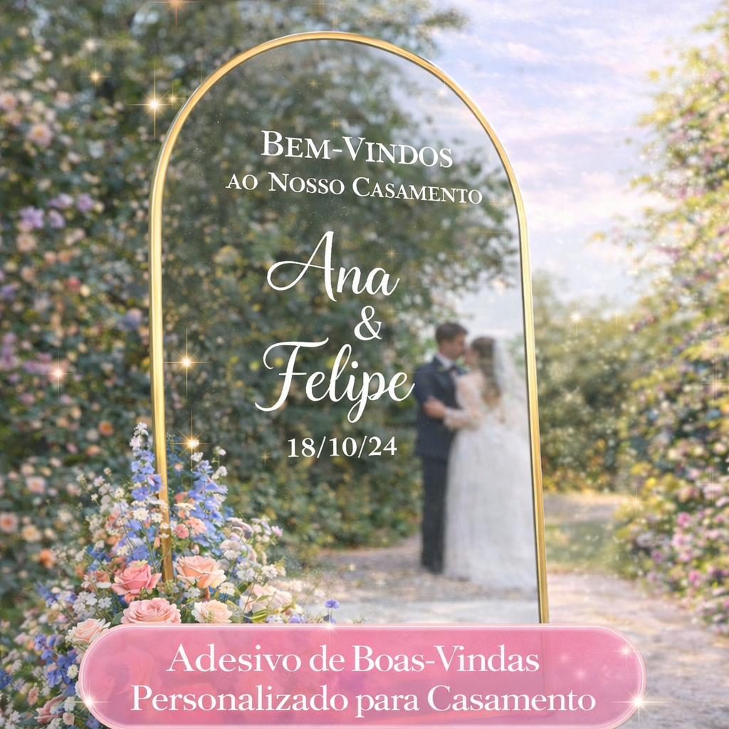 Adesivo Boas Vindas Casamento Festas Luxo Personalizado 60x55 Nomes Noivos Data Cores Fonte Personalizada Brilhoso Fosco