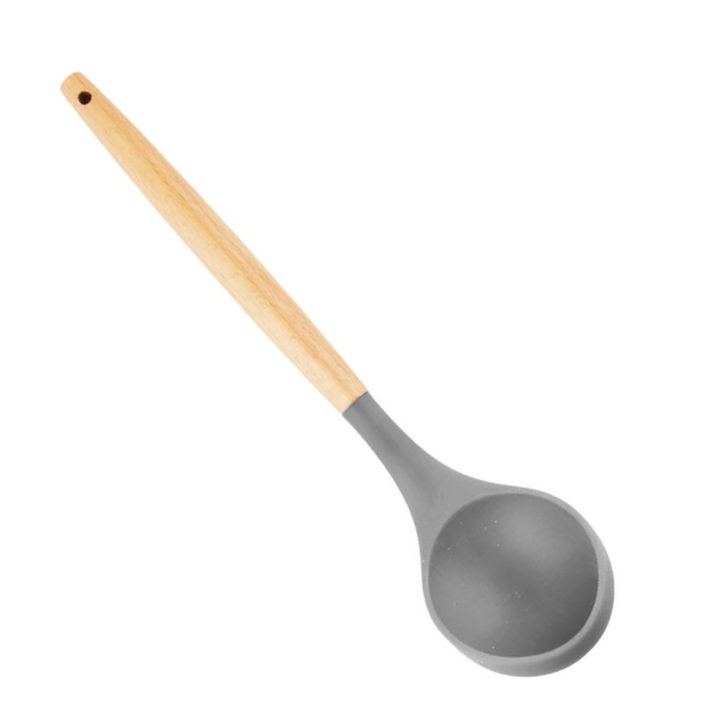 Concha de Feijão Sopa Silicone Cabo Madeira Para Servir Molho Caldo