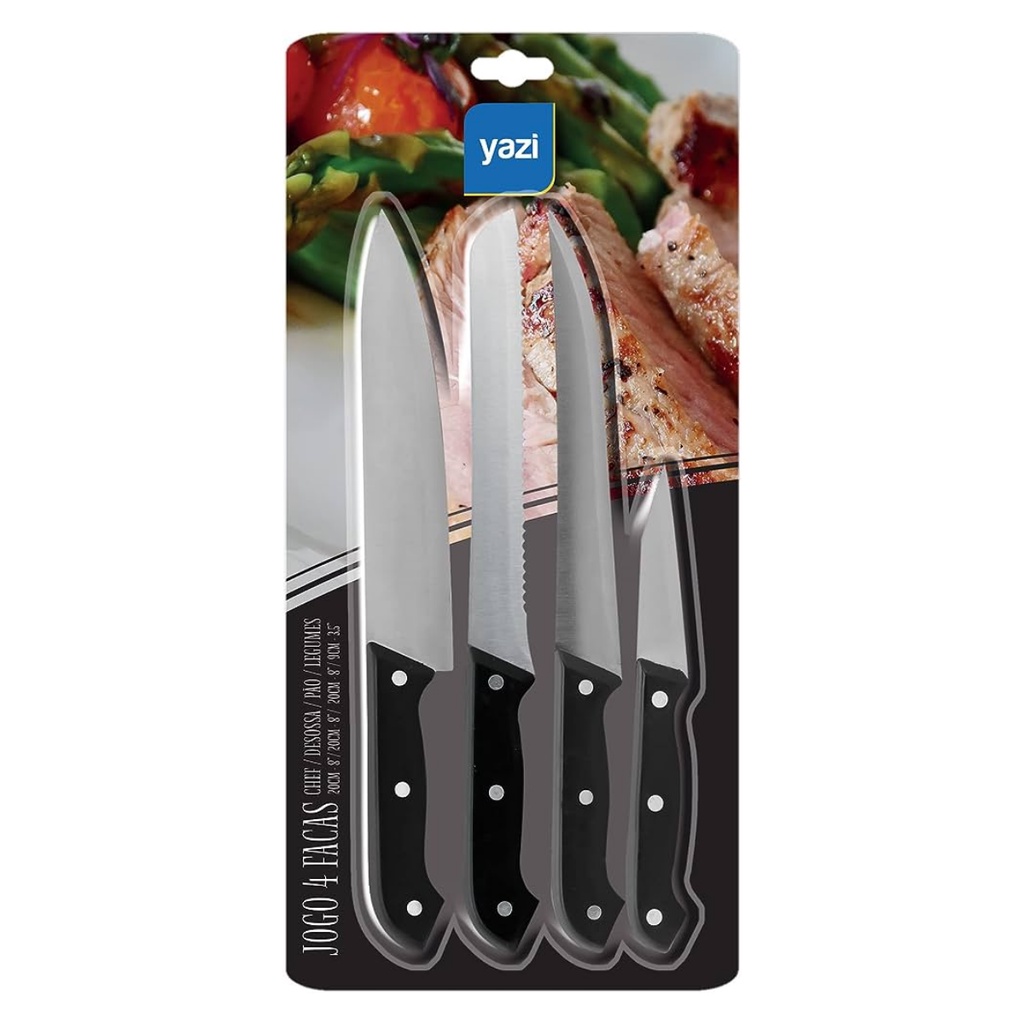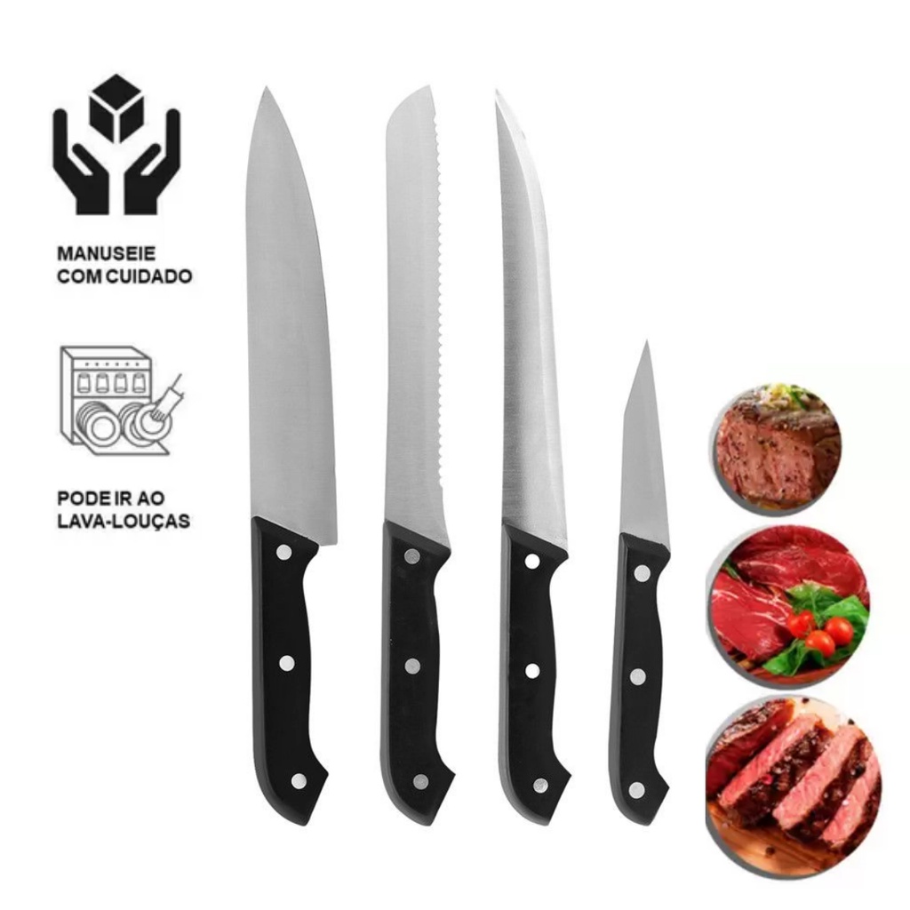 Jogo de Facas Para Cozinha Conjunto Aço Inox Kit 4 Peças