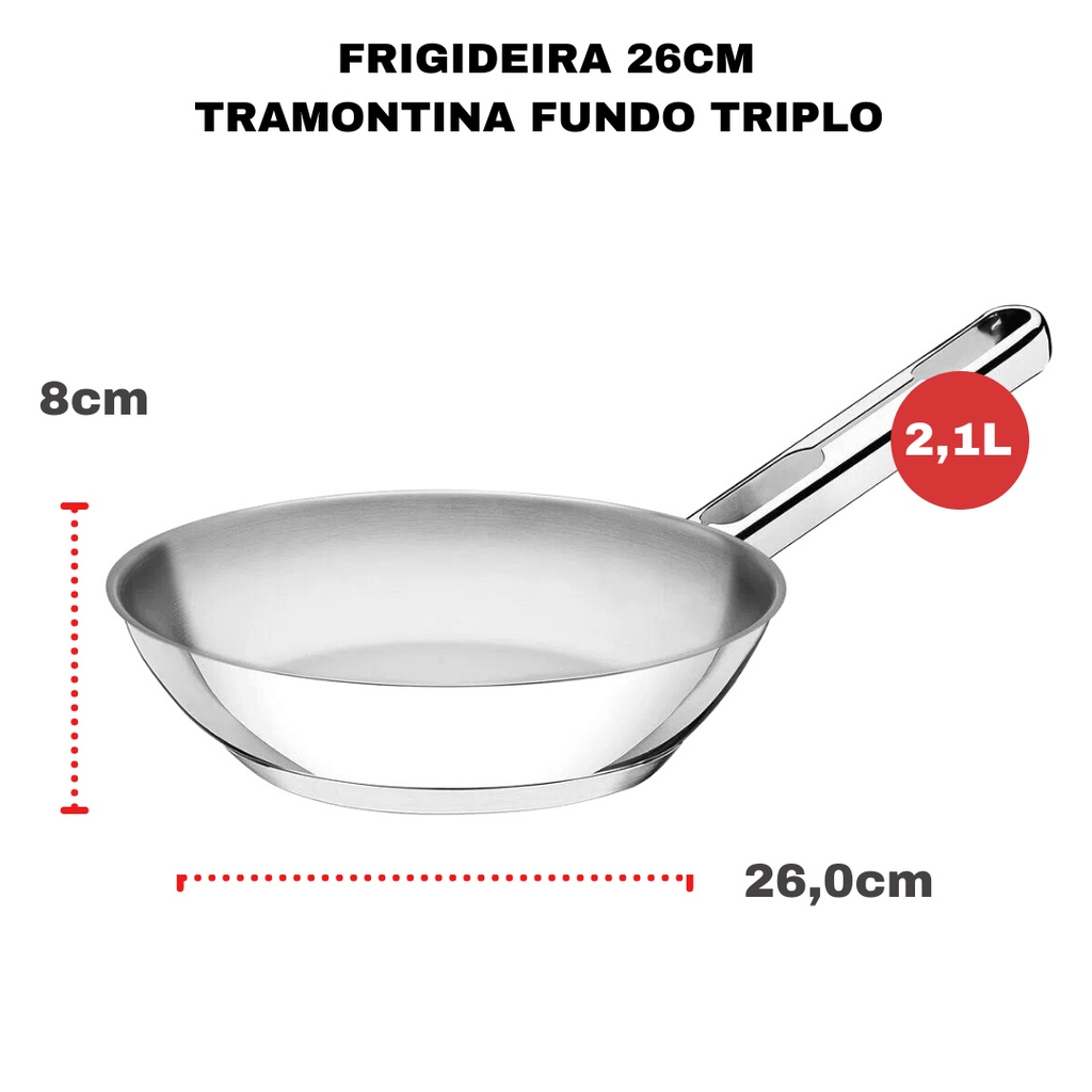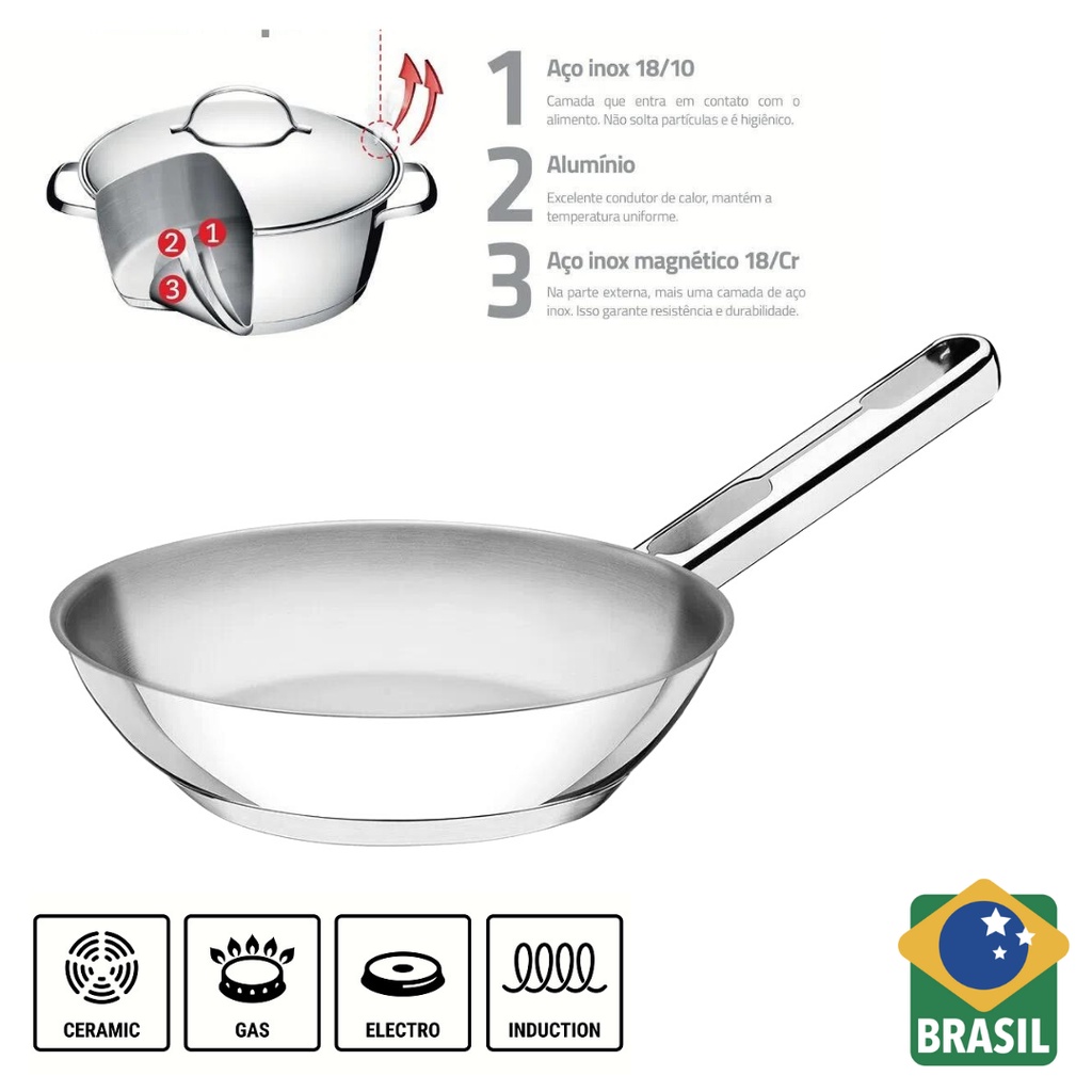 Frigideira Tramontina Cooktop Fogão Indução Aço Inox Fundo Triplo 24cm Allegra