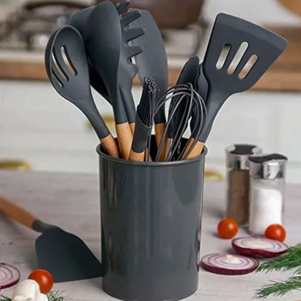 Espátula Vazada de Silicone Cabo Madeira Resistente Utensilio Cozinha