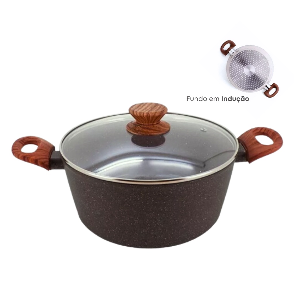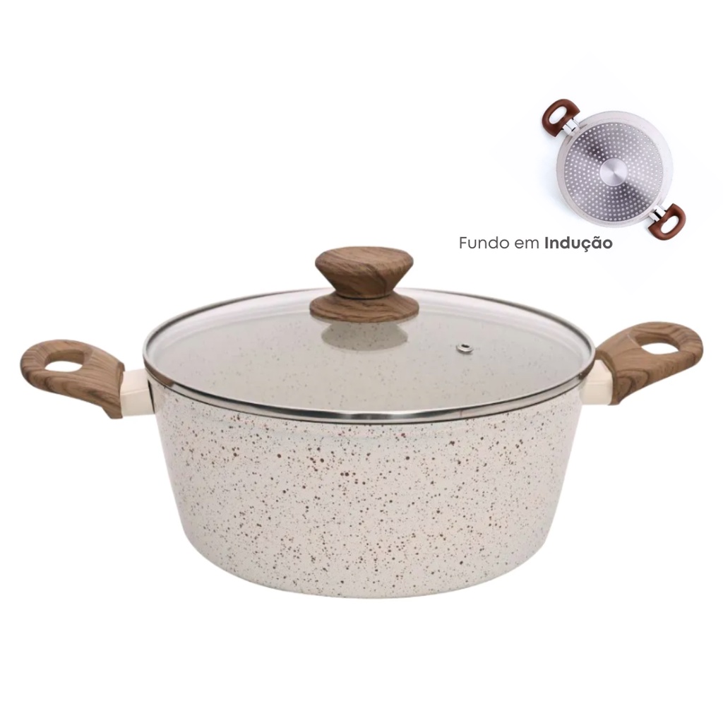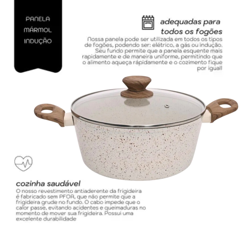 Panela Caçarola Antiaderente Cerâmica 24cm Cooktop Fogão Indução Avulsa 3,8 Litros Marmol MimoStyle