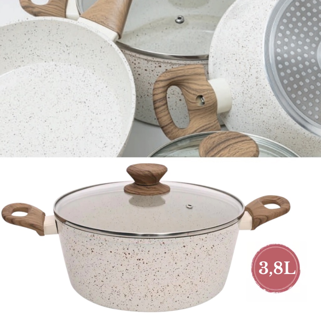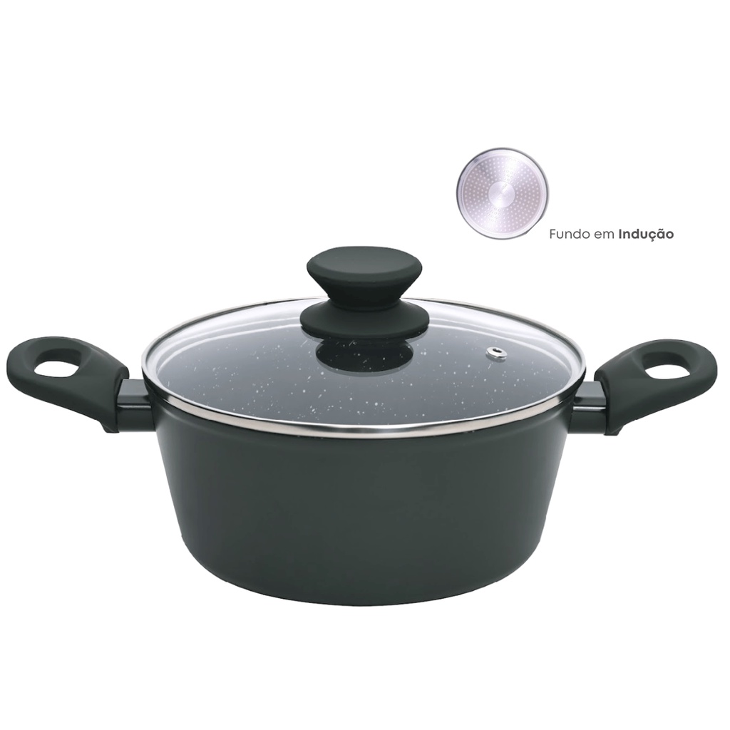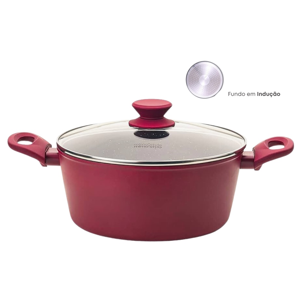 Panela Caçarola Antiaderente Cerâmica 24cm Cooktop Fogão Indução Avulsa 3,8 Litros Marmol MimoStyle