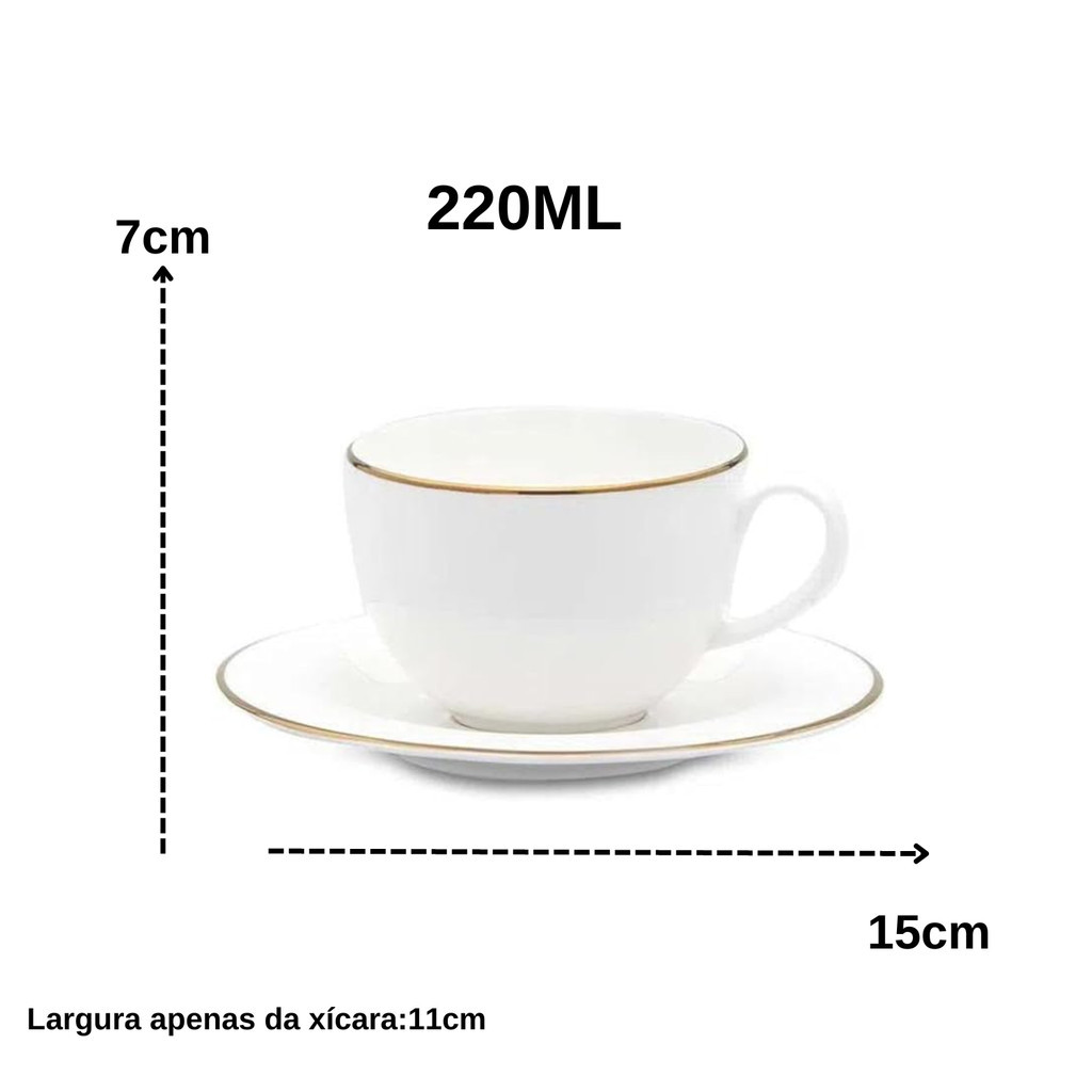 Xicara de Chá Café Com Pires 220ml Porcelana Borda Dourada Luxo Legacy Gold
