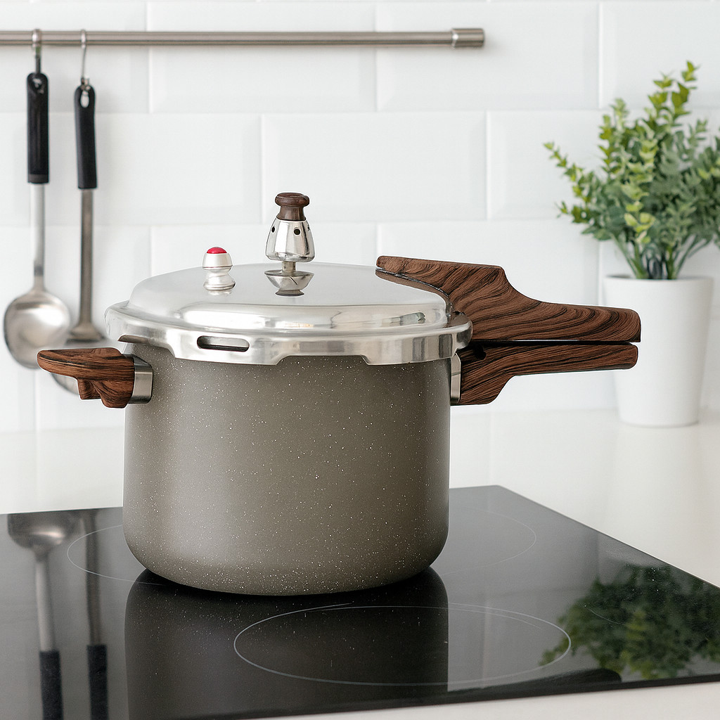 Panela de Pressão Antiaderente Cerâmico 6,8 Litros Marmol Grande Fechamento Externo