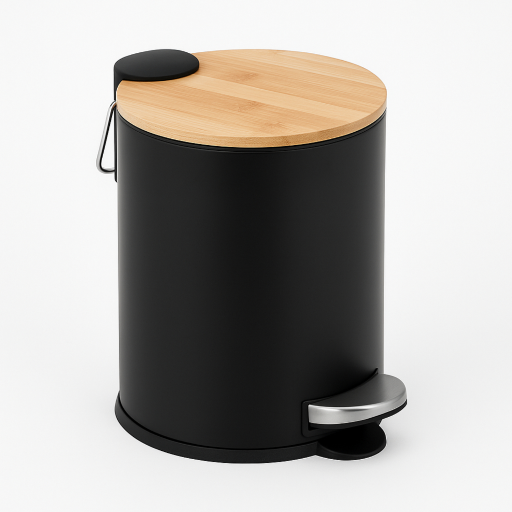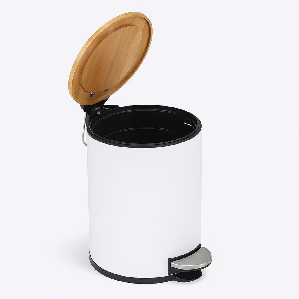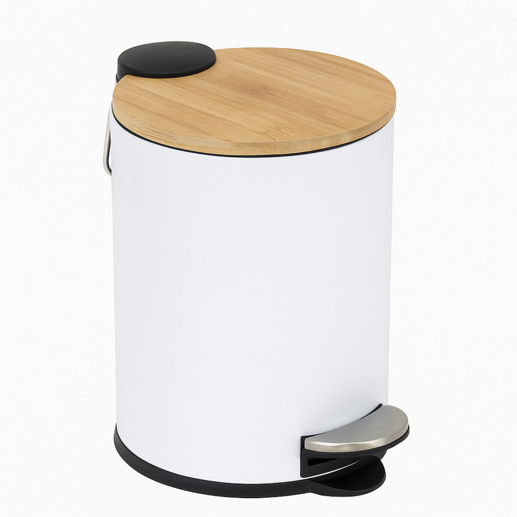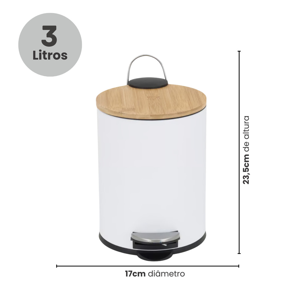 Lixeira Pedal C/ Tampa Bambu 3 Litros Cesto de Lixo Banheiro Cozinha