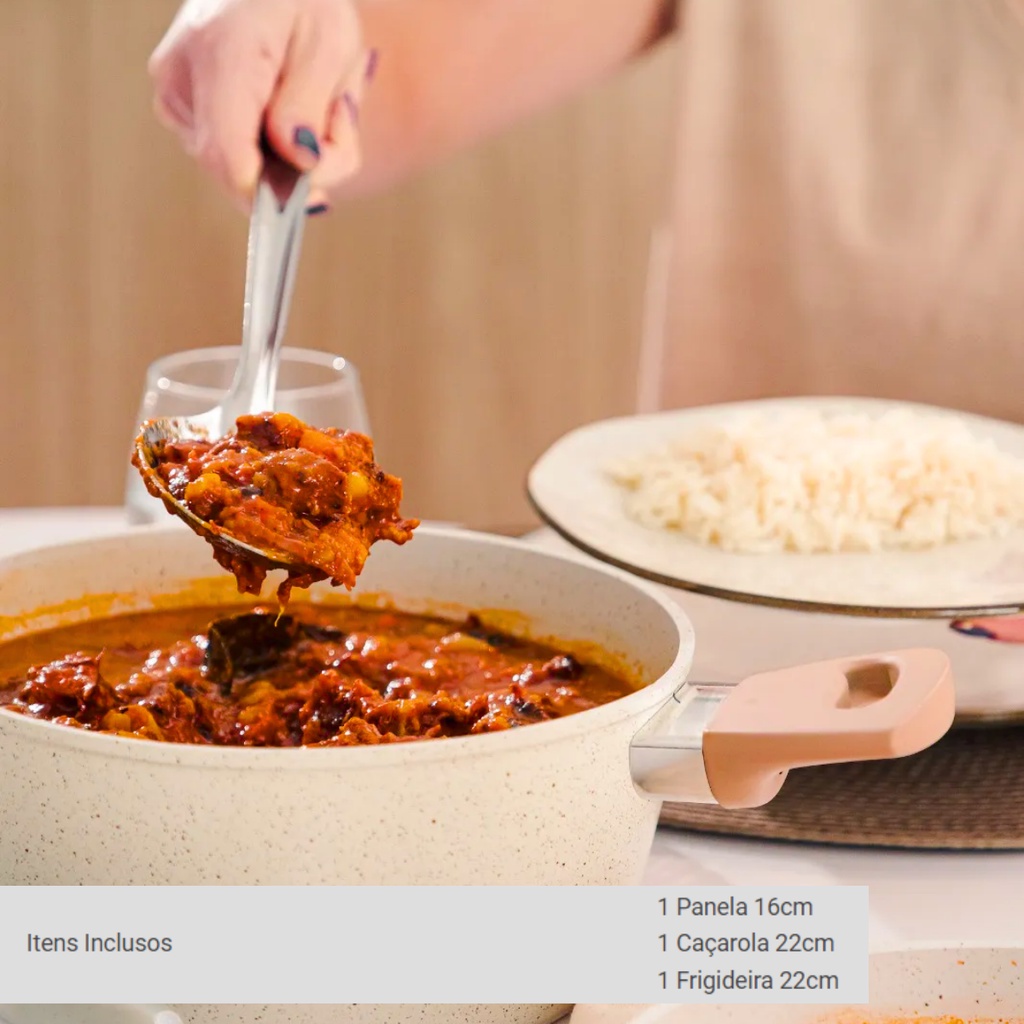 Jogo de Panelas Antiaderente Ceramica Vanilla Cooktop Fogão Indução Kit Carmela 3 Peças Conjunto