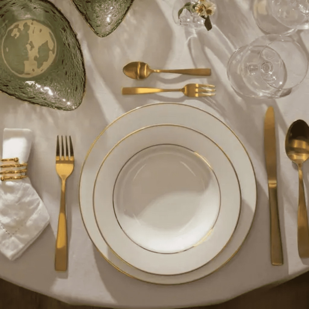 Jogo De Pratos Fundo 20,5cm Porcelana Kit 4 Peças Luxo Borda Dourada Majesty Gold