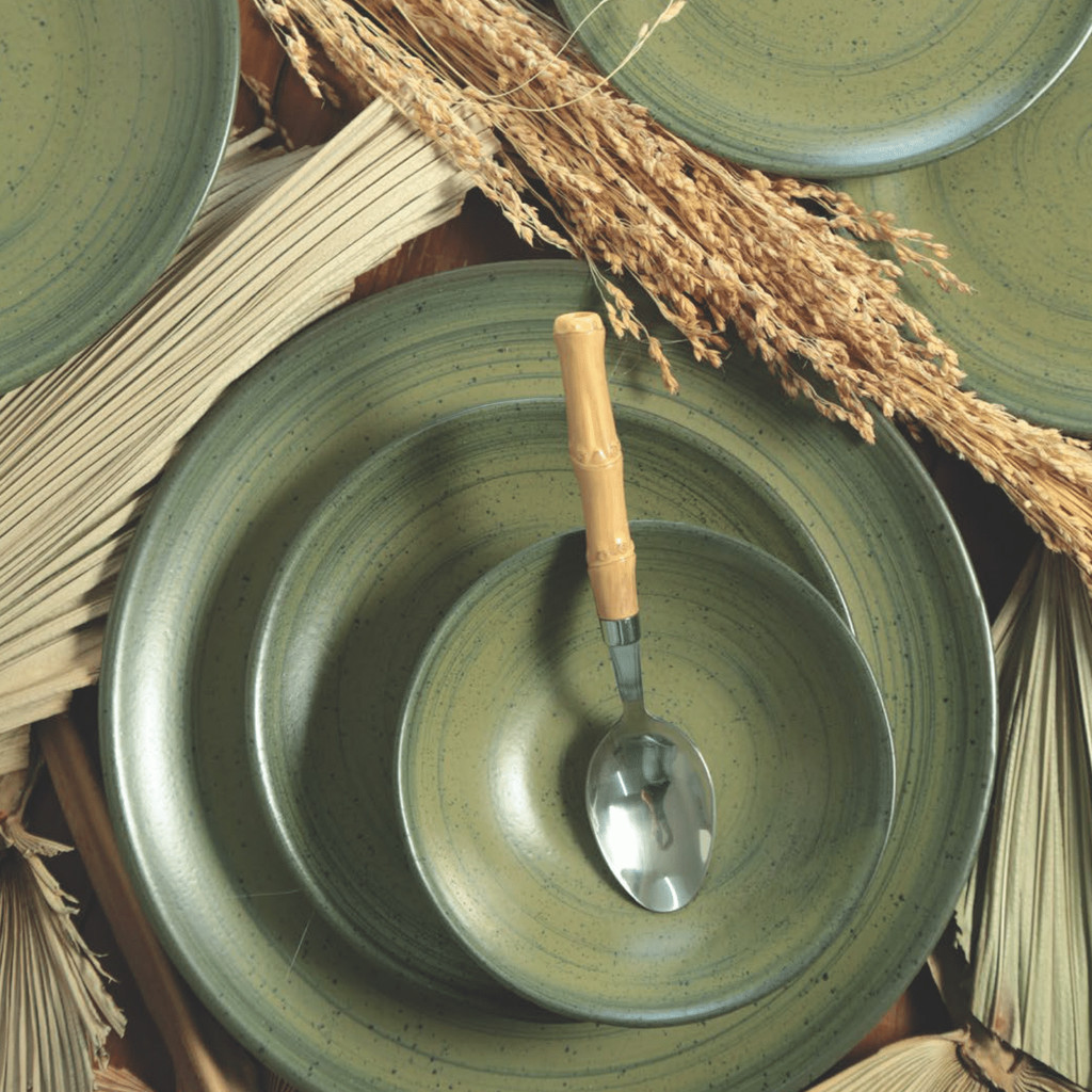 Jogo De Pratos Fundo Cerâmica Kit 6 Peças 25cm Kya Olive Alleanza Rustico