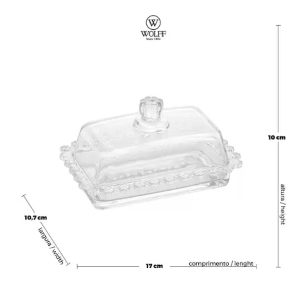 Manteigueira Porta Manteiga Vidro Cristal Com Tampa Florzinha Wolff Daisy Grande