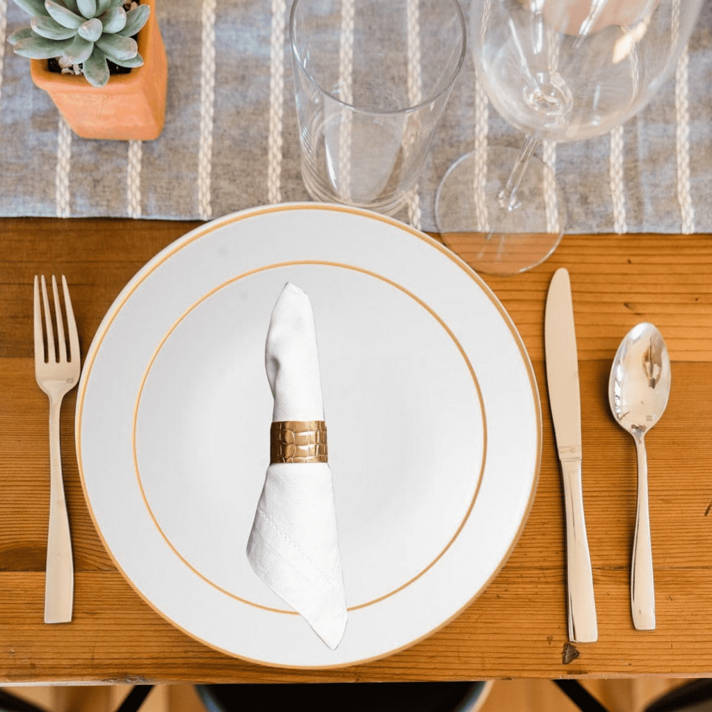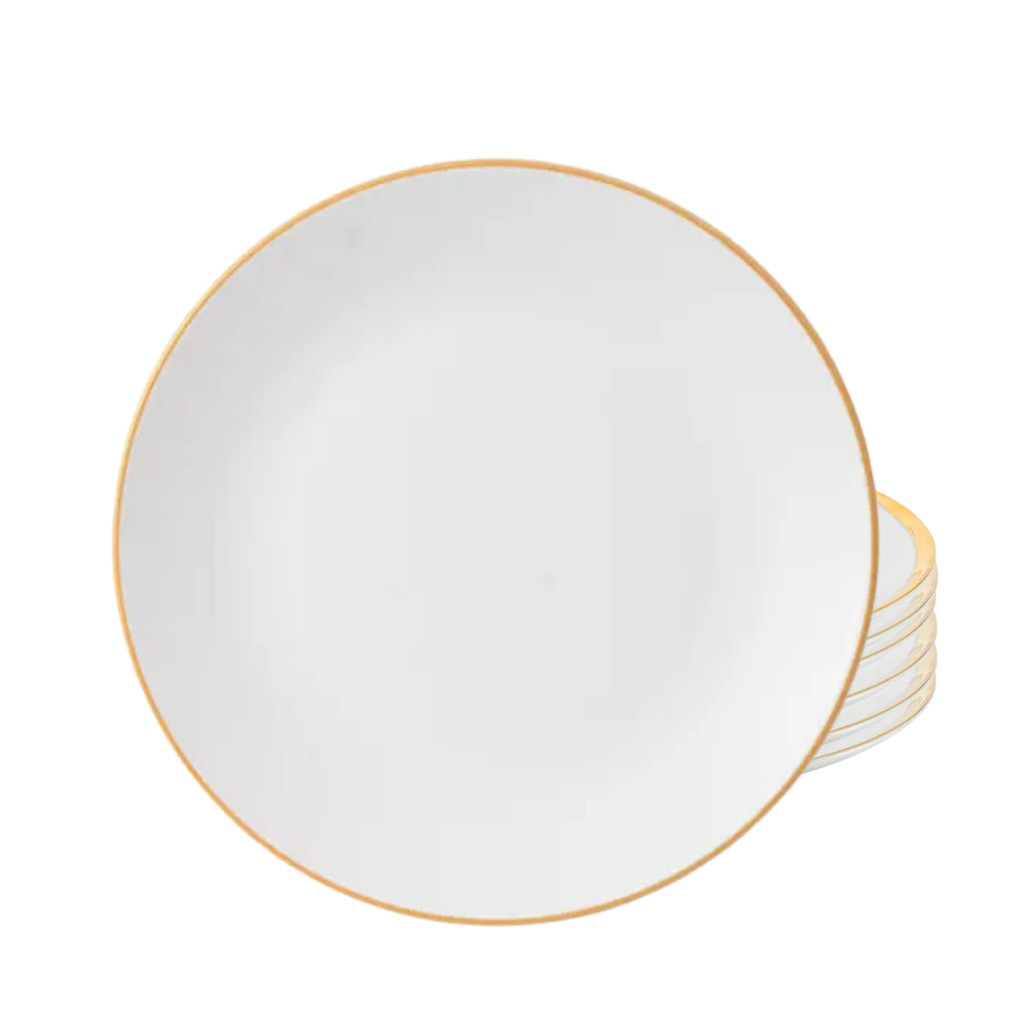 Jogo De Pratos Raso 27cm Kit 6 Peças Borda Dourada Porcelana Legacy Gold Luxo Mesa Posta
