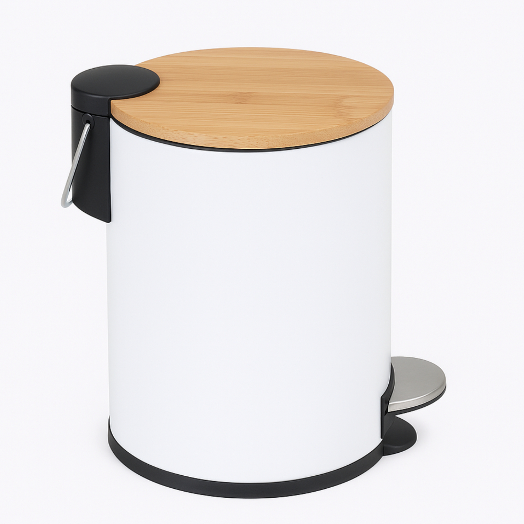 Lixeira Pedal C/ Tampa Bambu 5 Litros Cesto de Lixo Banheiro Cozinha