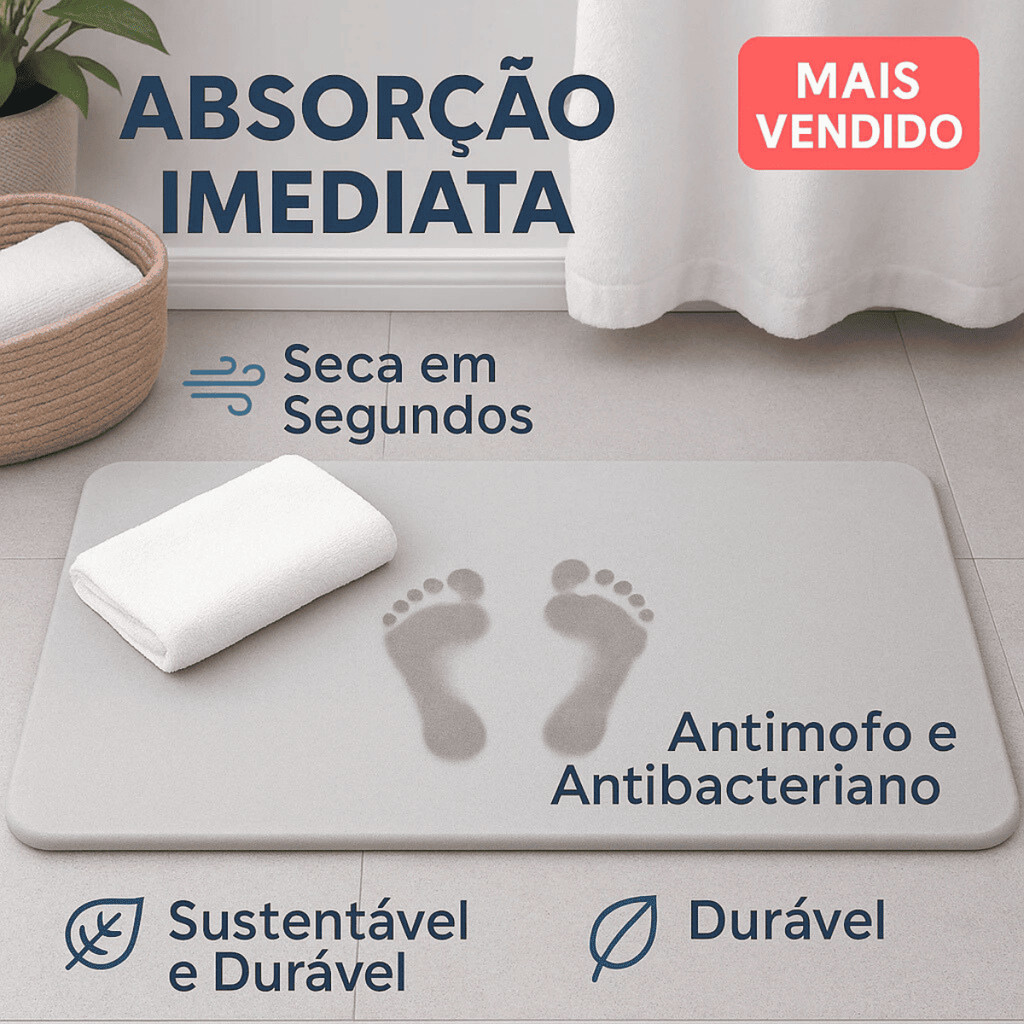 Tapete De Pedra Diatomita Banheiro Antiderrapante Impermeável Cinza 60cm Lyor