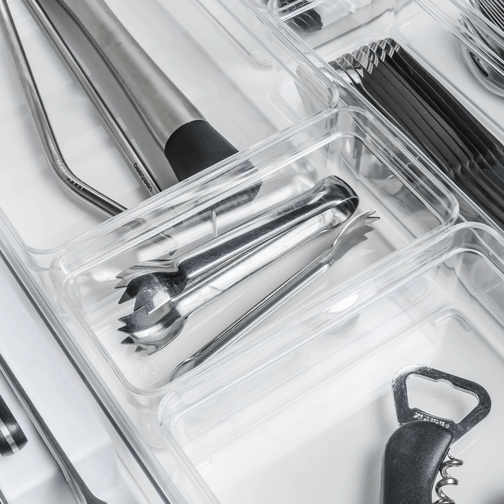 Kit 2 Organizadores de Gaveta Modular 15cm Multiuso Transparente Clear Ou