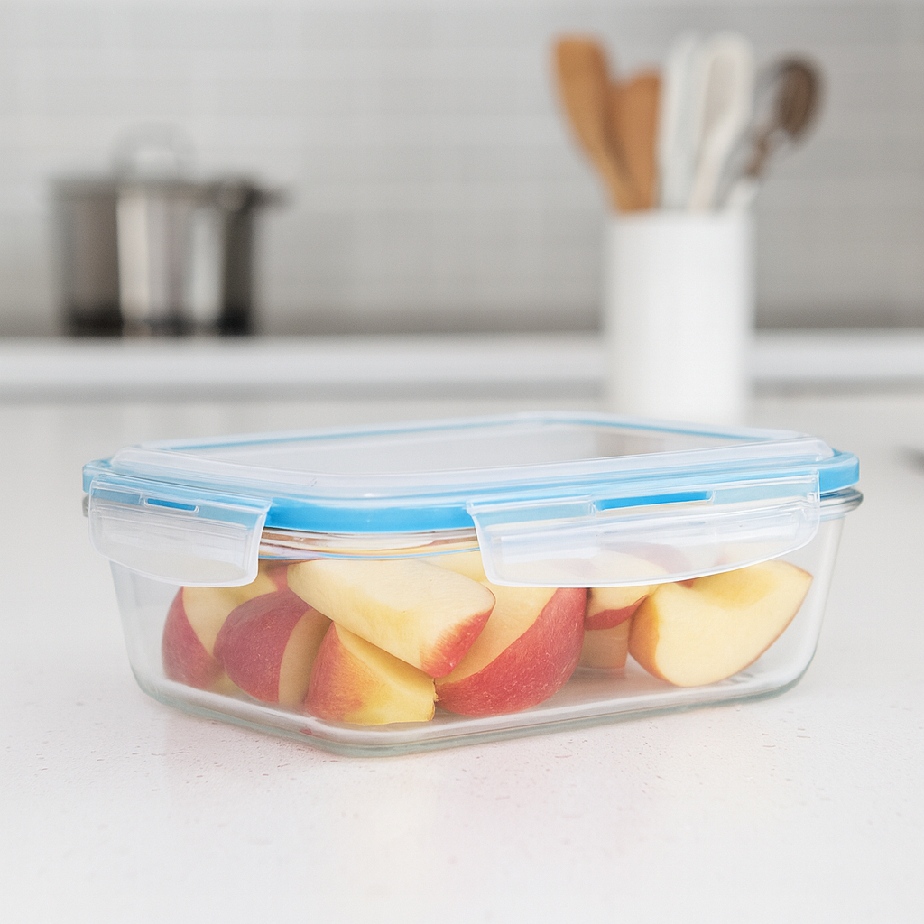 Pote Hermético de Vidro Borossilicato Marmita 1000ml Vasilha Alimentos Retangular