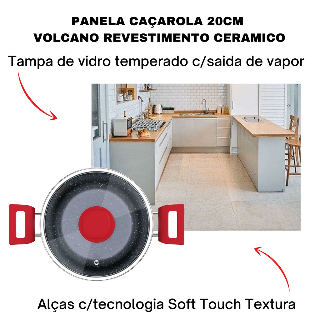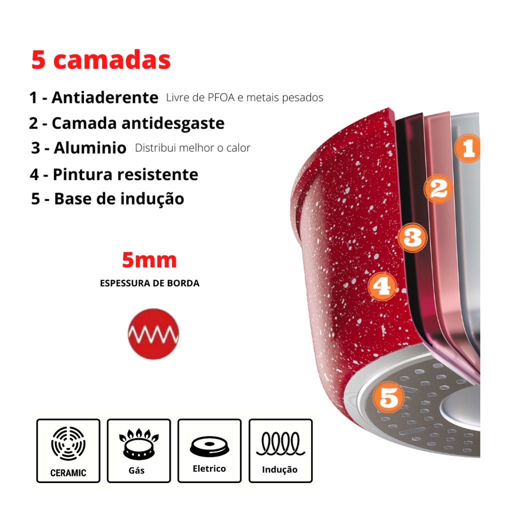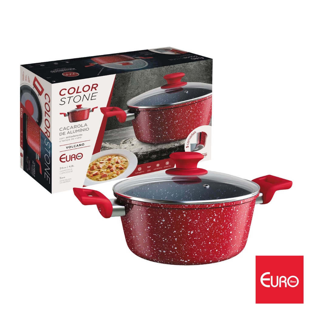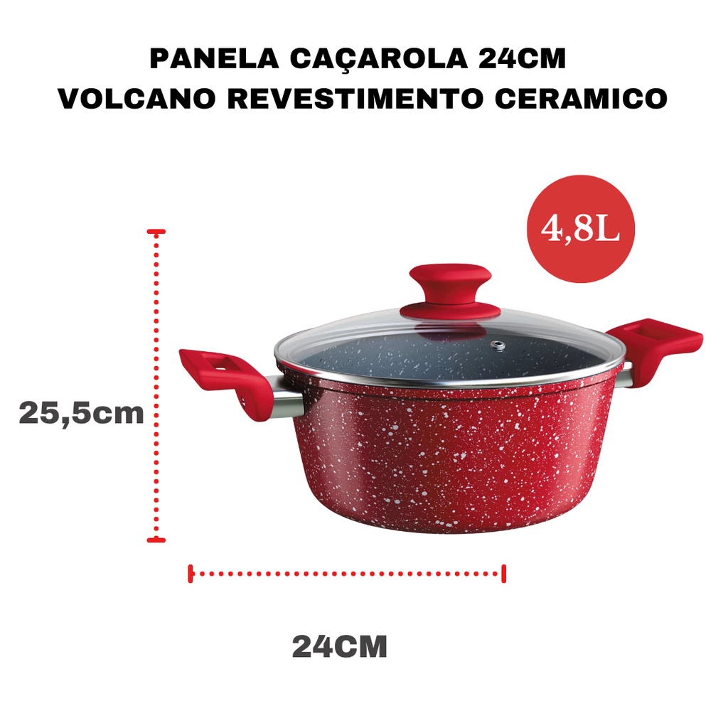 Panela Caçarola Avulsa Antiaderente Cerâmica Cooktop Fogão Indução 24cm 4,8 Litros Colorstone Volcano Vermelha Euro