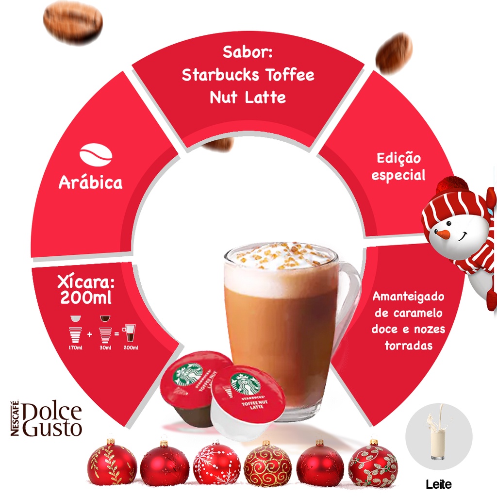 Café com Leite em Cápsula Dolce Gusto Starbucks Toffee Nut Latte Caixa 127g 12 Unidades