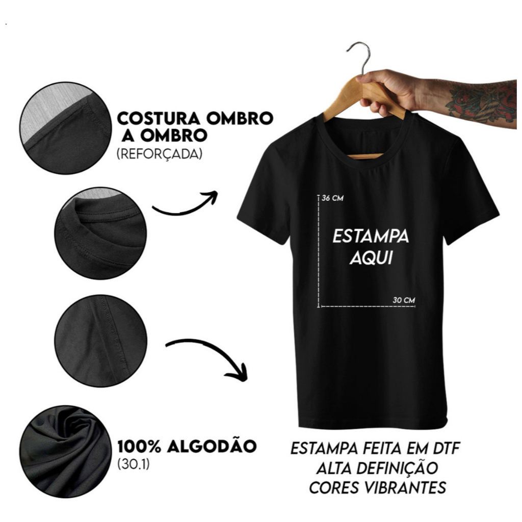 Camiseta Brasil Masculina Gola Redonda Camisa Premium Algodão 30.1 Plus Size P ao G3