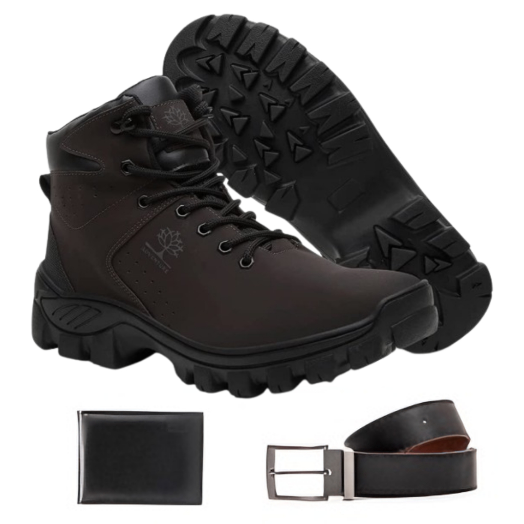 Bota Masculina em Couro Coturno Botinha Adventure Masculino Reforçada Resistente a Água