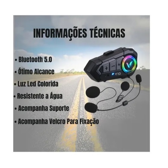 Microfone Sem Fio V10 Rgb P/ Capacete Moto Bluetooth