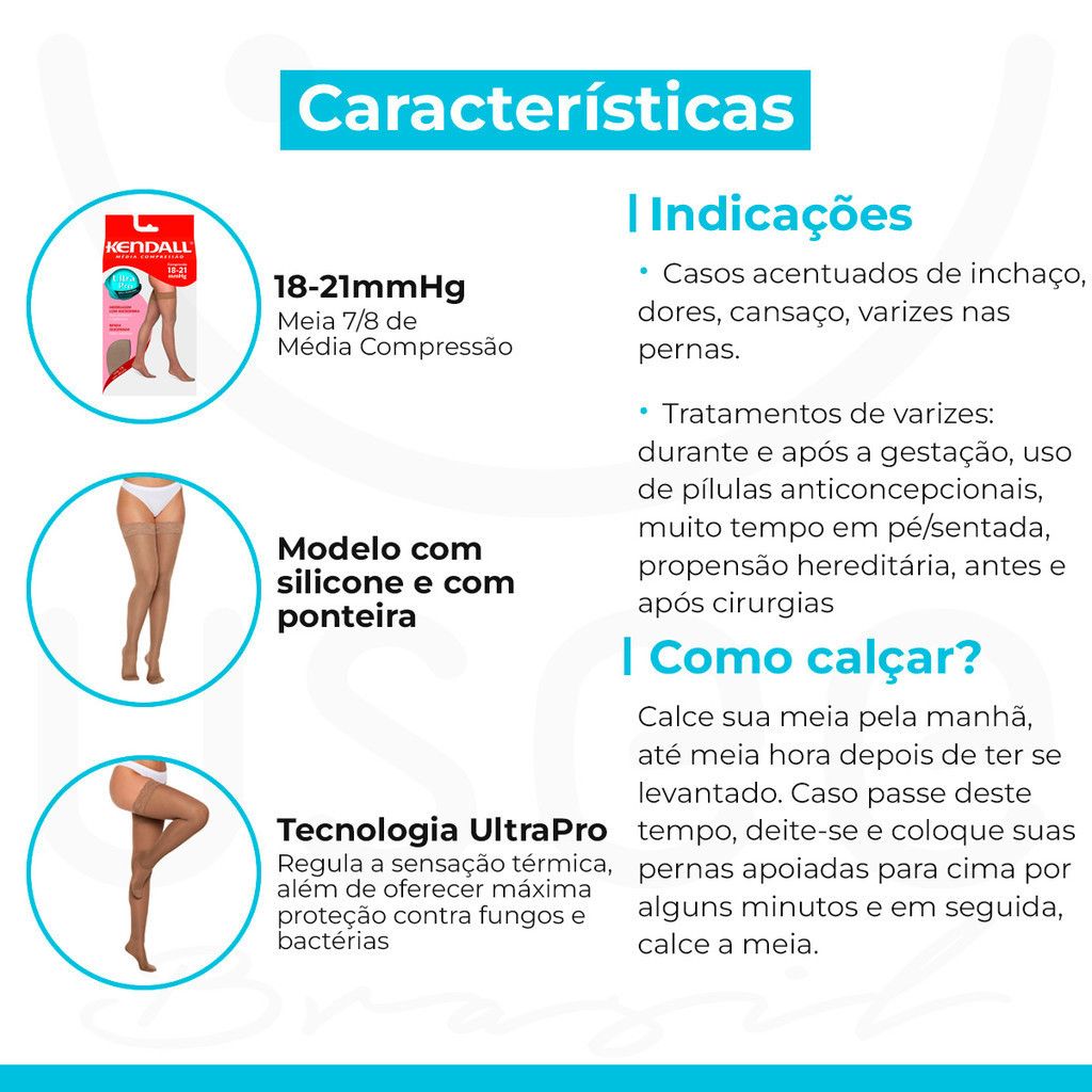 Meia 7/8 com Silicone Média Compressão 18-21 mmHg Kendall