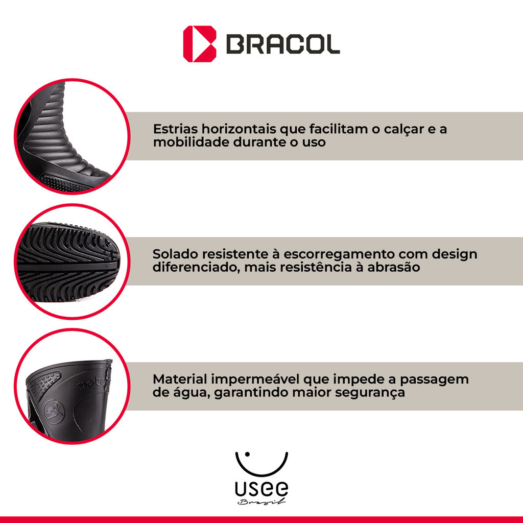 Bota Cano Longo Pvc Antiderrapante Impermeável Motoqueiro Bracol